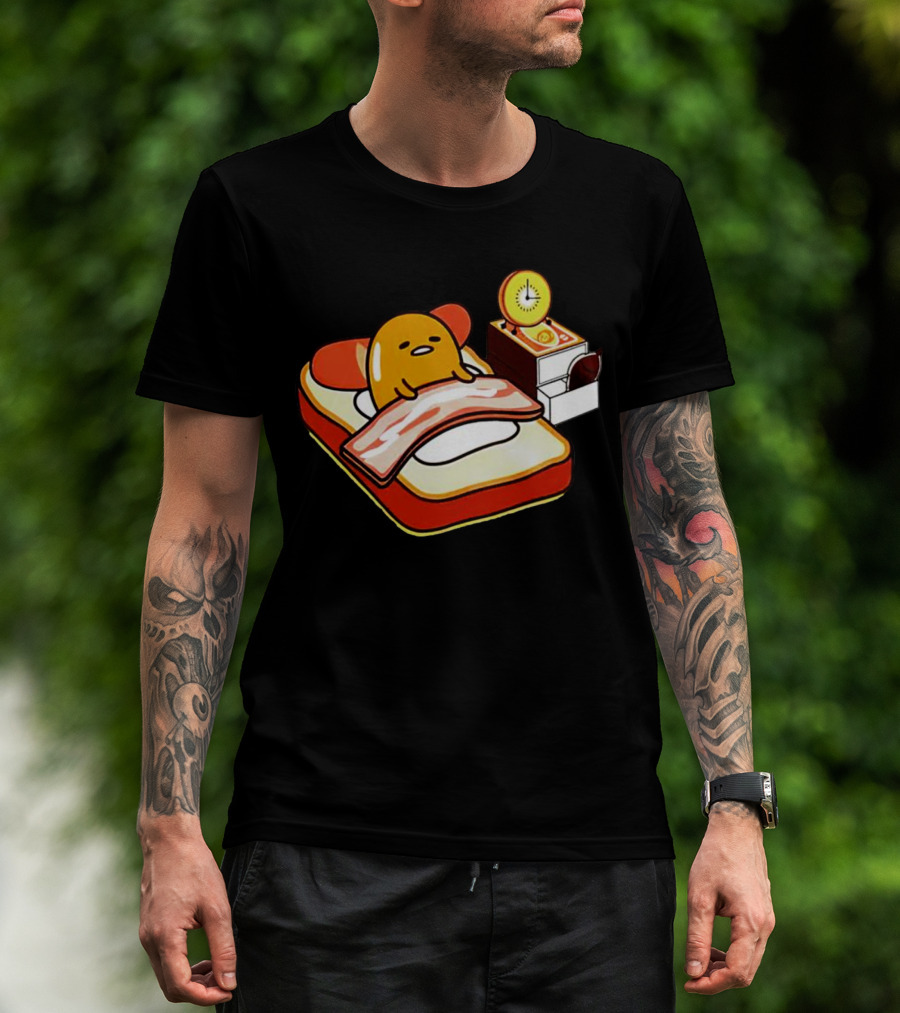 Gudetama Toast Bed With Bacon Blanket And Egg Alarm Clock T-Shirt