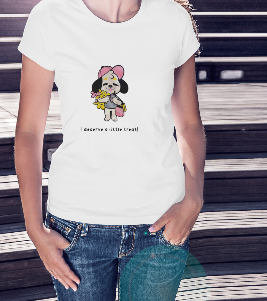 How much will this I deserve a little treat hugging cute puppy with toy and pink bag shirt shrink?