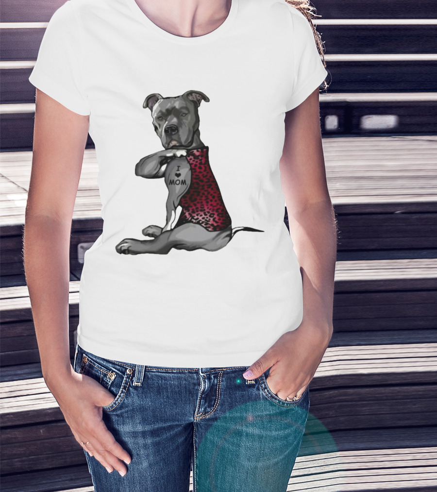 I Love Mom Dog Tattoo Red Leopard Print T-Shirt