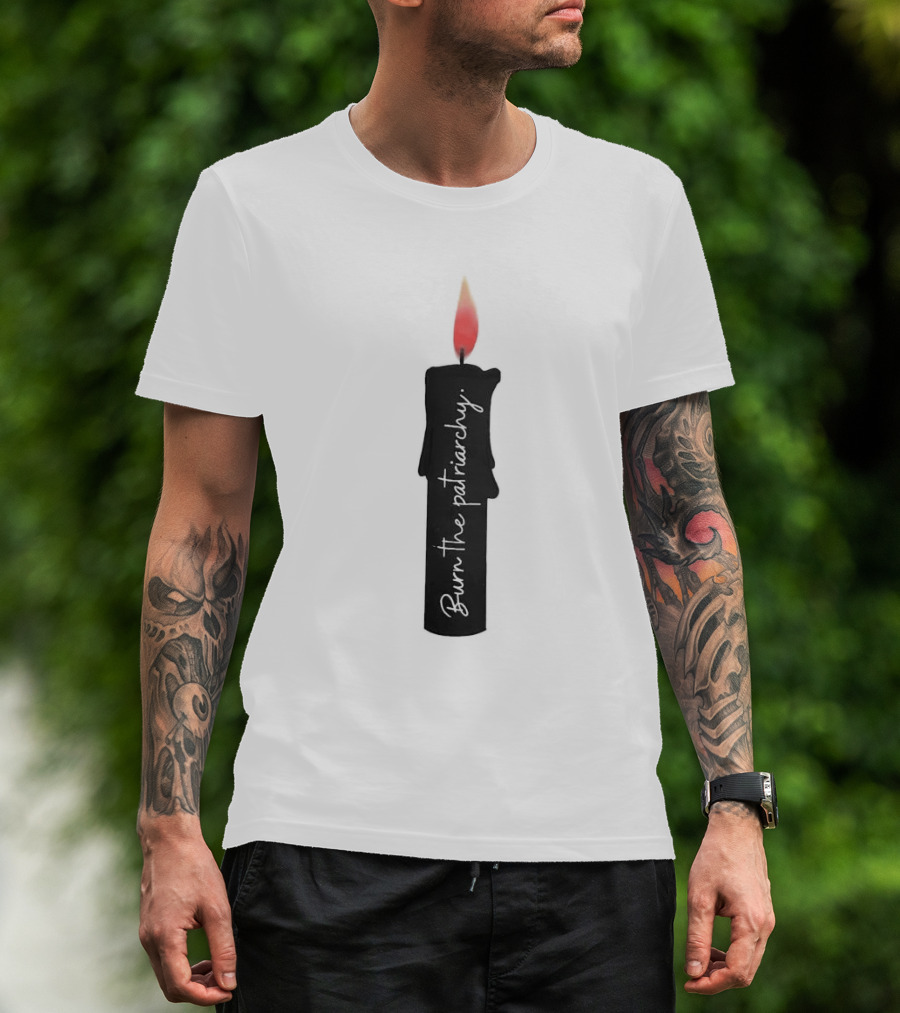 The Burn the Patriarchy Candle Flame T-shirt is designed for everyday wear and a consistent fit. Fabric is pre-shrunk ring-spun cotton with durable stitching. See the size chart below for exact measurements.