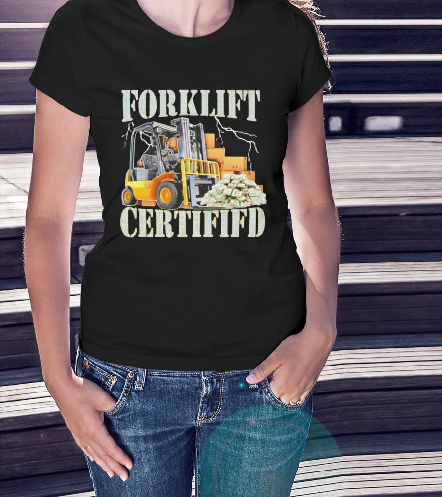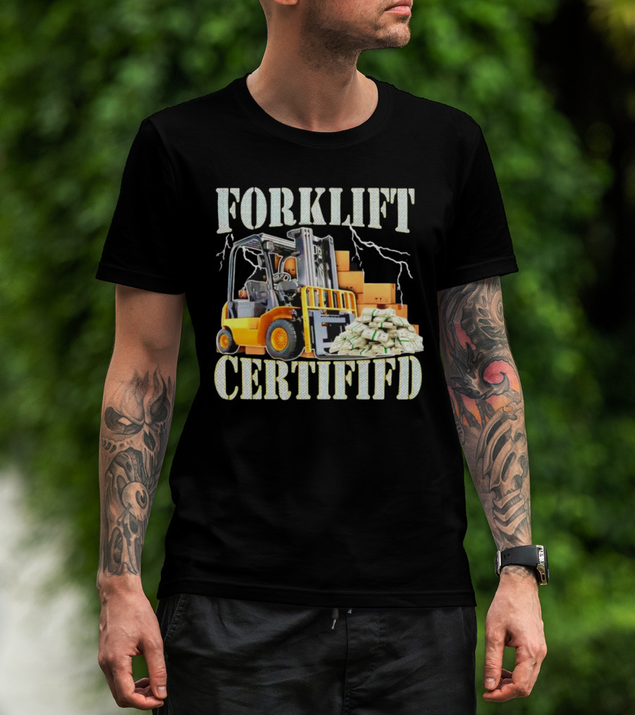 Forklift Certified With Lightning And Cash Stacks T-Shirt