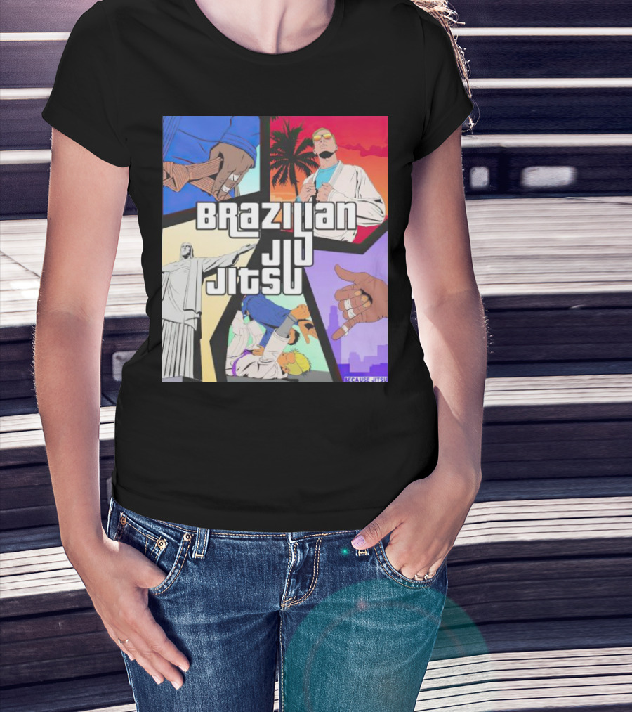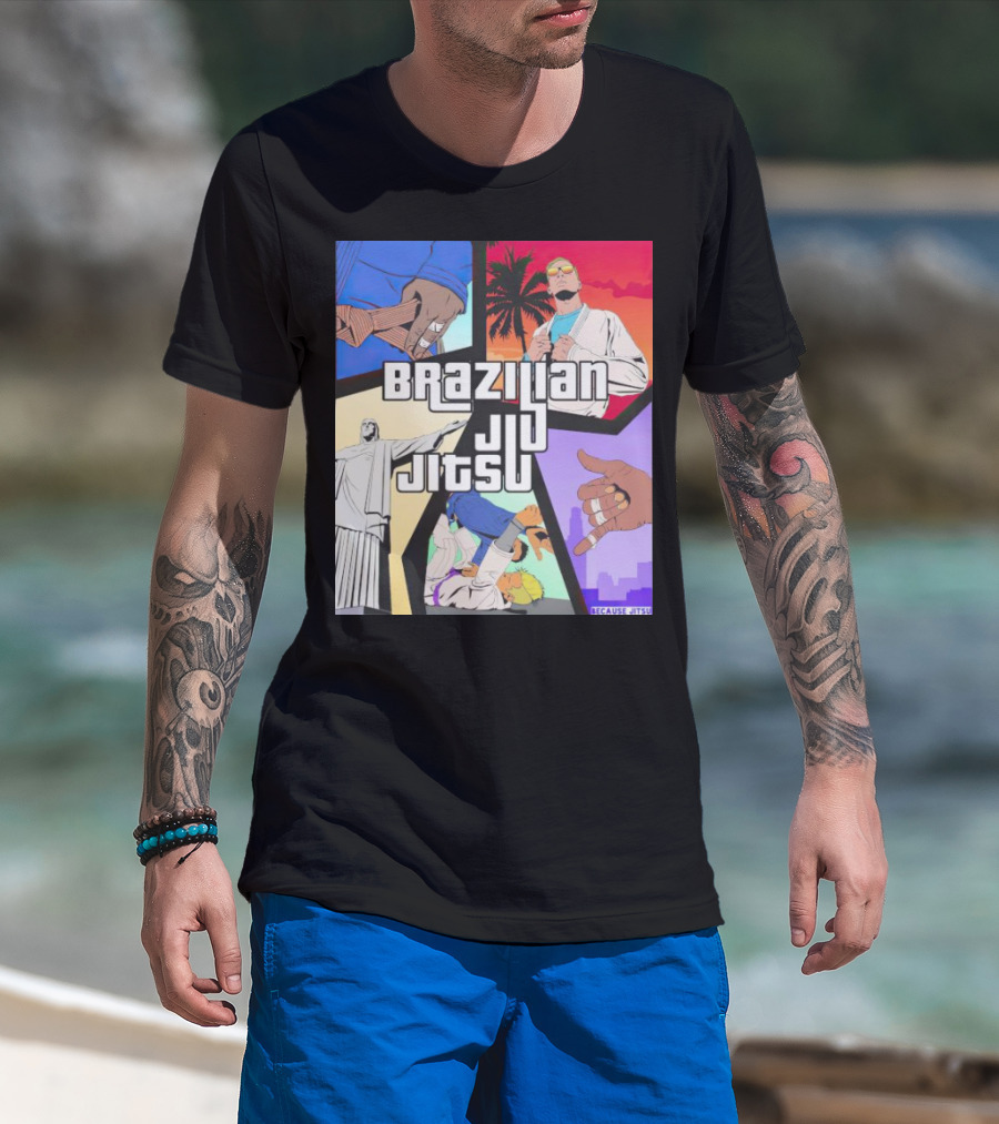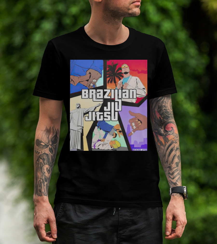 Brazilian Jiu Jitsu Because Jitsu Palms And Rio Comic Style Collage T-Shirt
