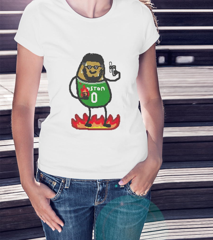 Jayson Tatum Boston NBA Potatum Green Jersey Fire T-Shirt
