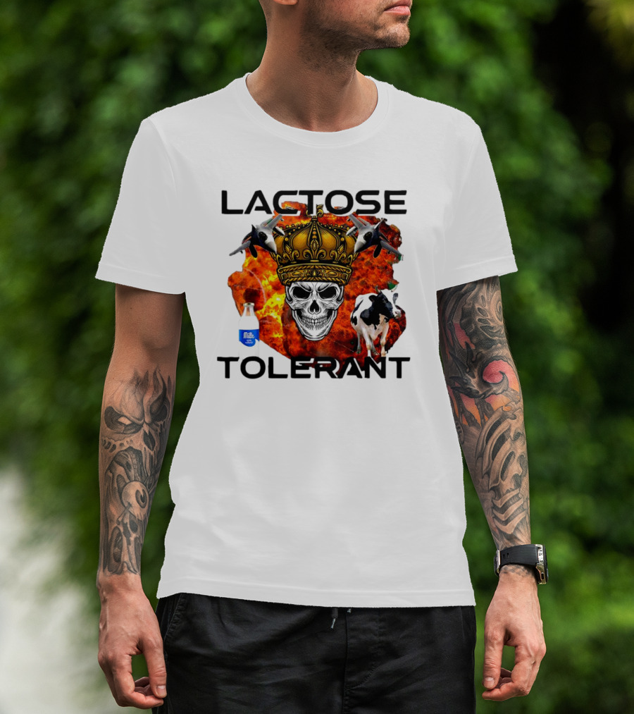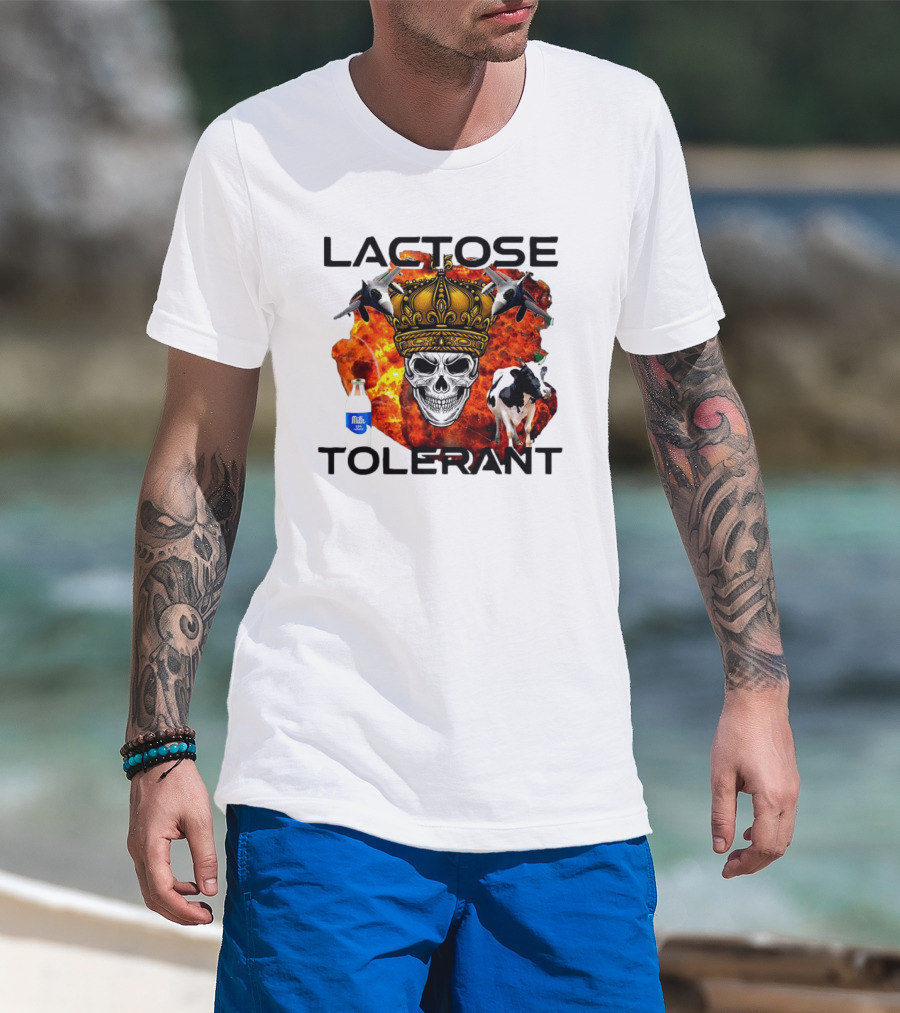 Lactose Tolerant Skull Crown Cow Milk Aircraft Explosion T-Shirt