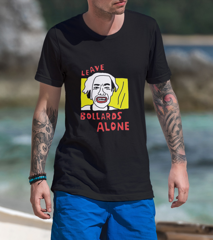 Leave Bollards Alone Illustration With Cartoon Face And Yellow Background T-Shirt
