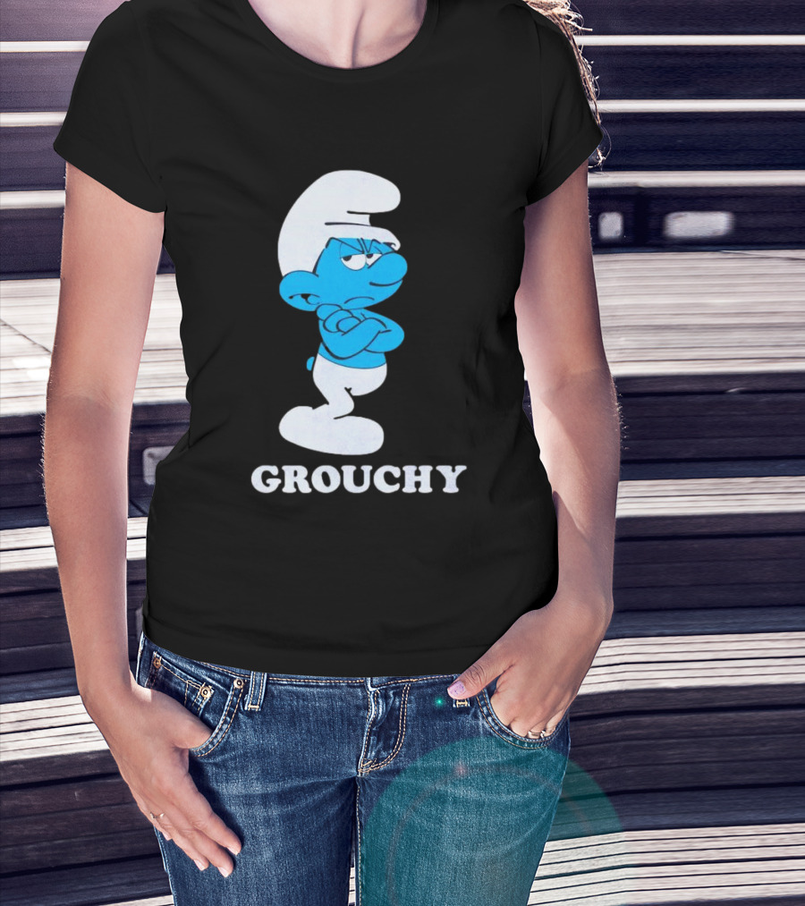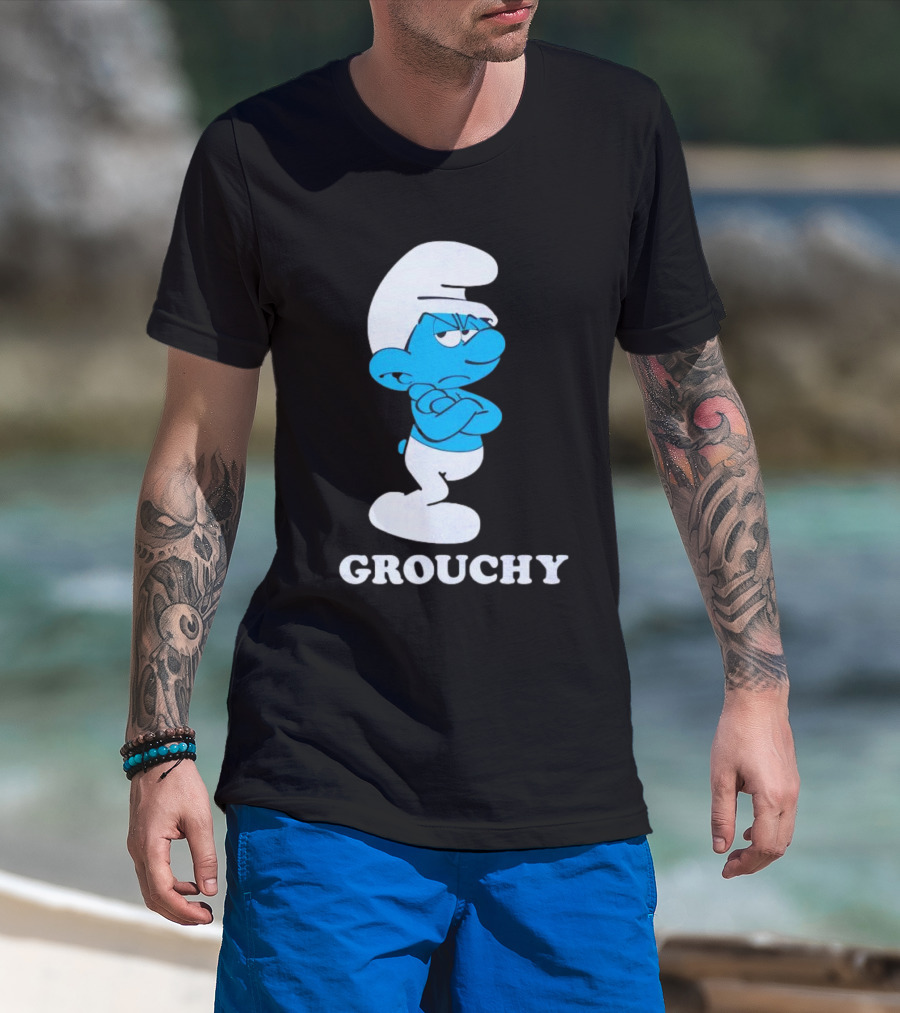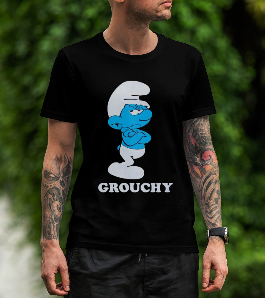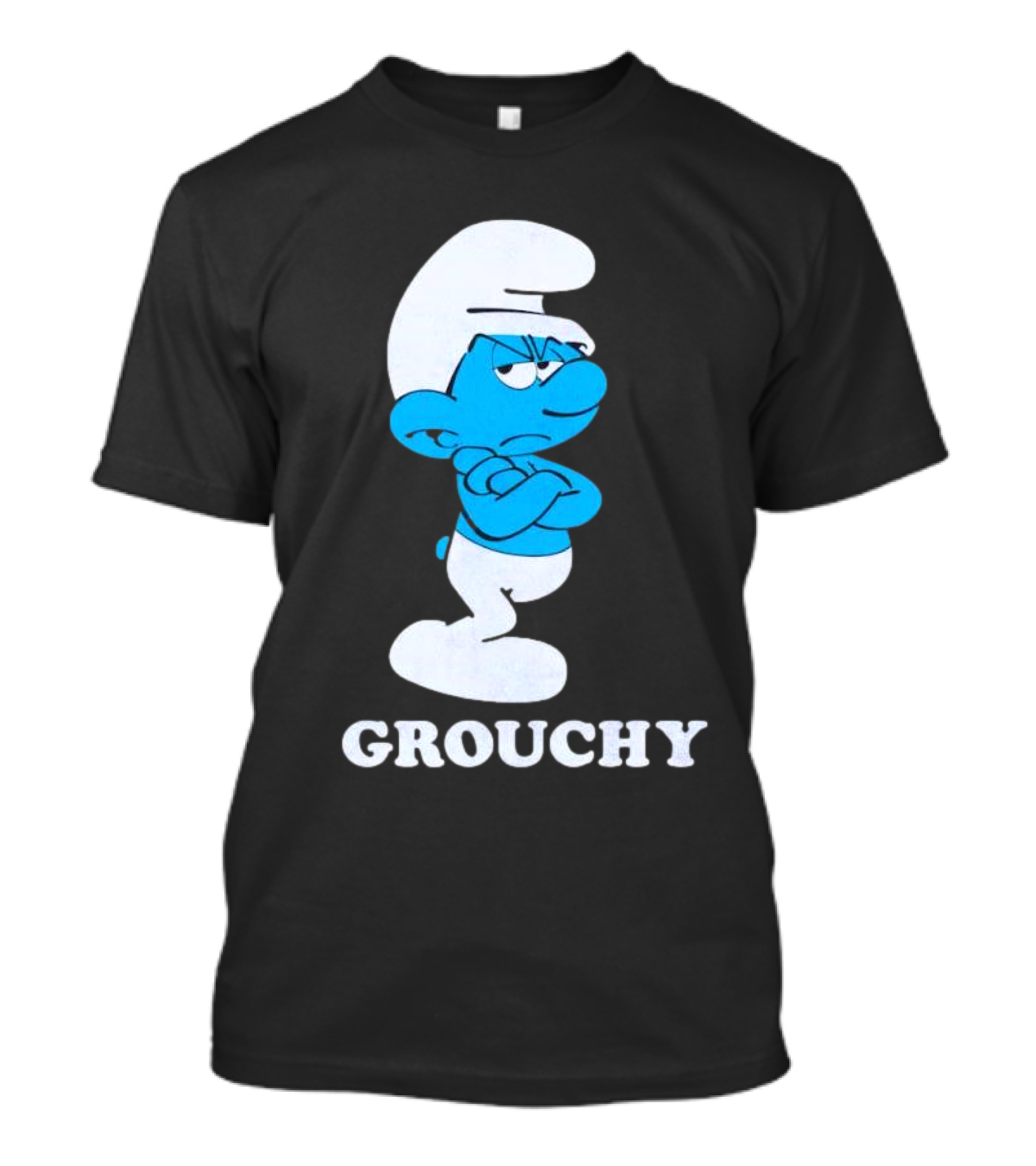 The Grouchy Smurf Classic Blue Character T-shirt is designed for everyday wear and a consistent fit. Fabric is pre-shrunk ring-spun cotton with durable stitching. See the size chart below for exact measurements.