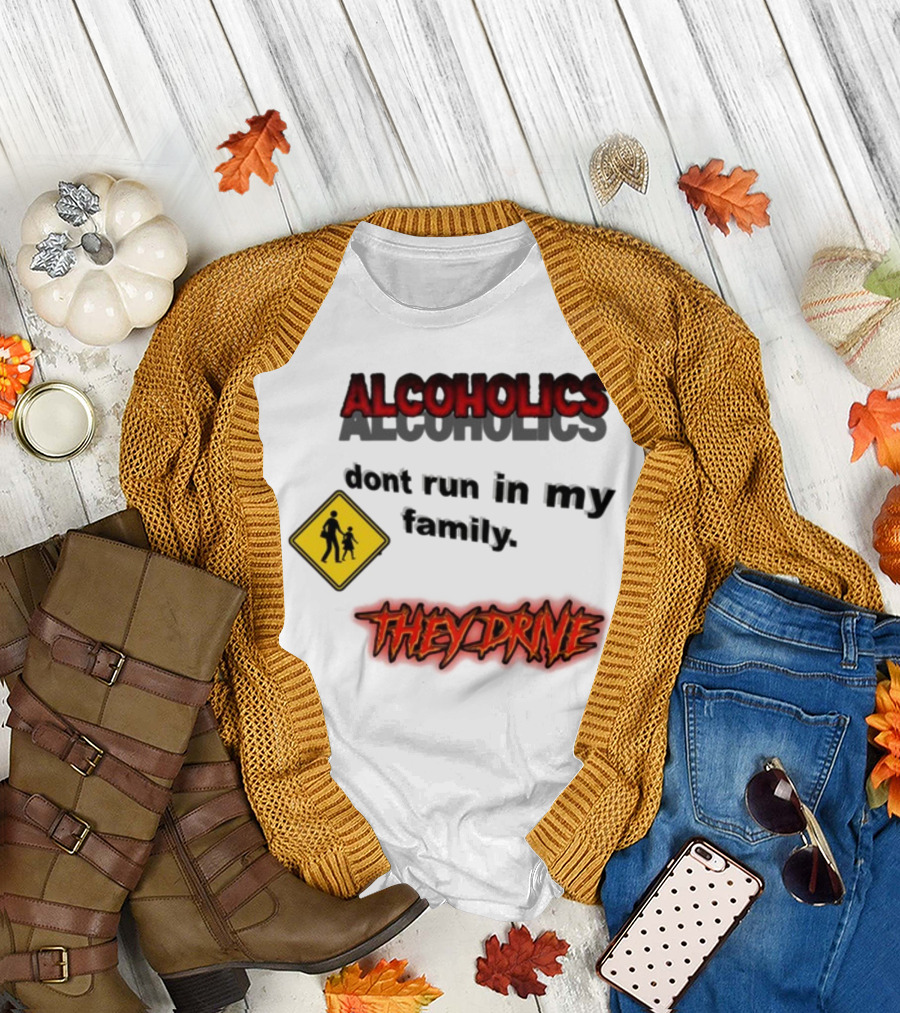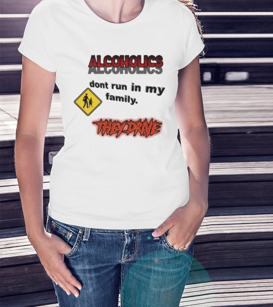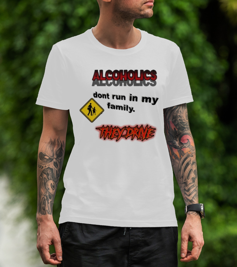 Coldestdrip Alcoholics Drive Don't Run In My Family Traffic Sign T-Shirt