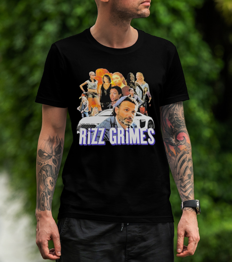Rizz Grimes Walking Dead Car Iconic Character Collage T-Shirt