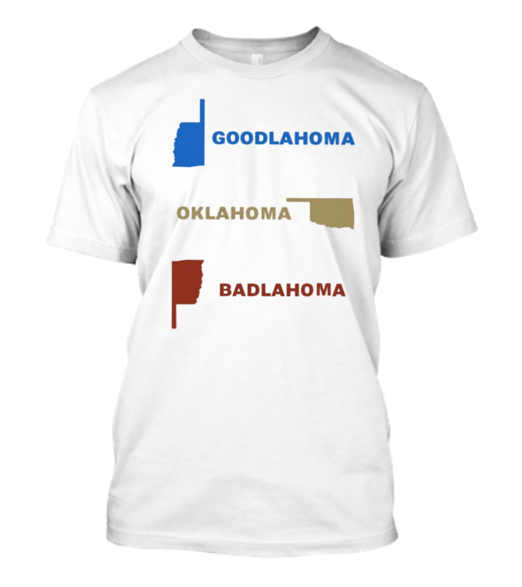 The Goolahama Oklahoma Badlahoma State Silhouette Colors T-shirt is designed for everyday wear and a consistent fit. Fabric is pre-shrunk ring-spun cotton with durable stitching. See the size chart below for exact measurements.