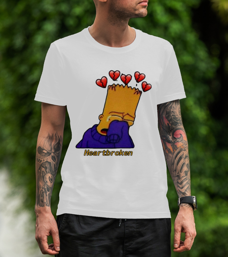 Bart Simpson Heartbroken Crying With Broken Hearts T-Shirt