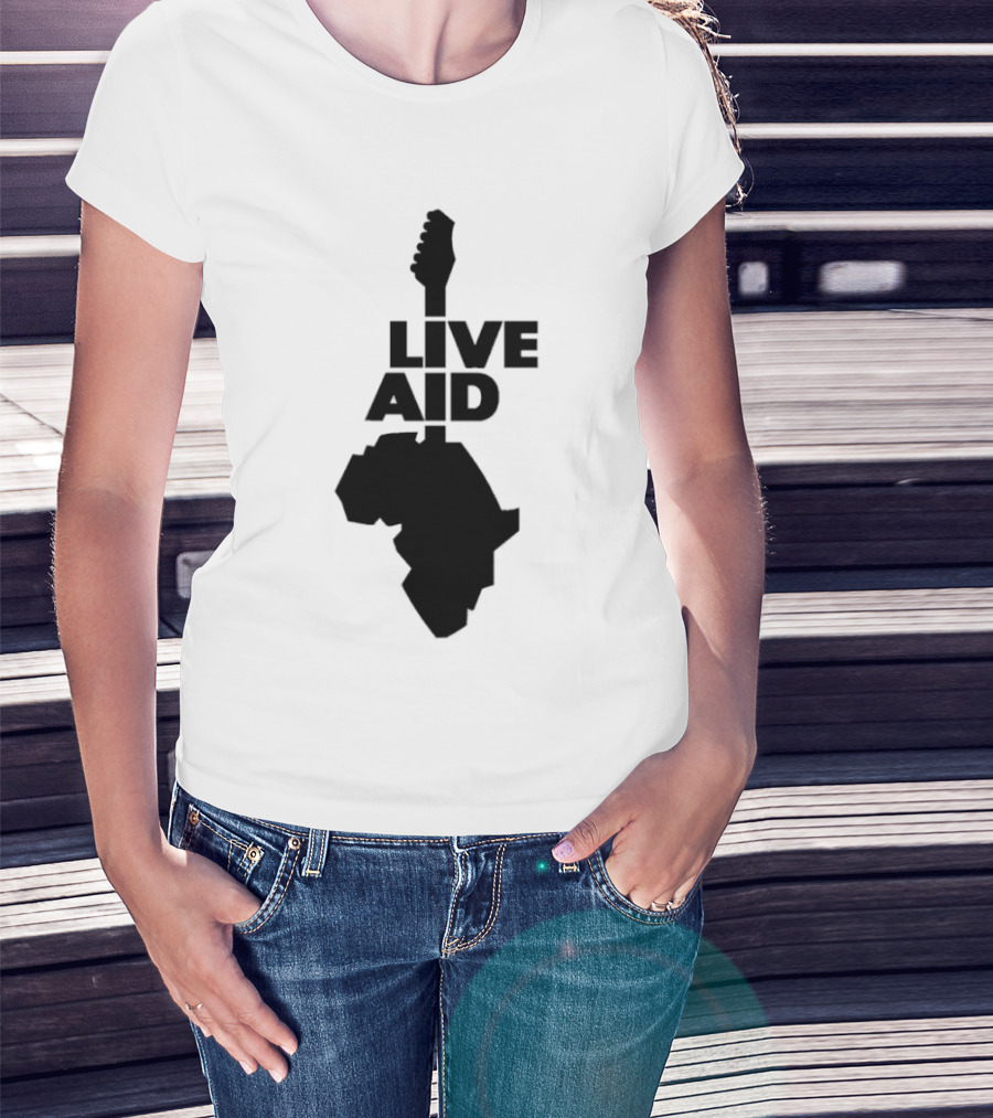 The Live Aid Guitar Africa T-shirt is designed for everyday wear and a consistent fit. Fabric is pre-shrunk ring-spun cotton with durable stitching. See the size chart below for exact measurements.