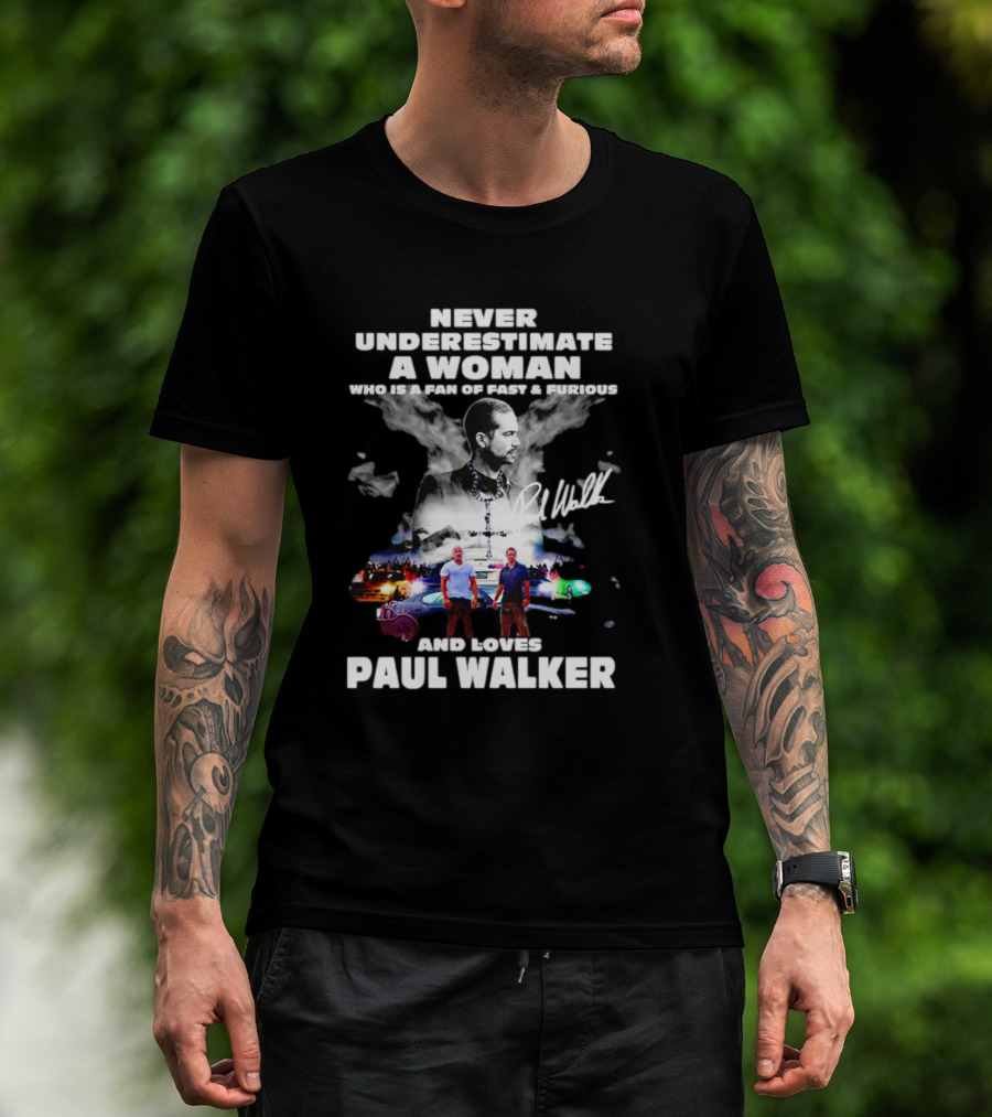Never Underestimate A Woman Fan Of Fast And Furious Loves Paul Walker Signature T-Shirt