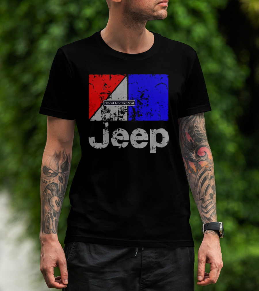 The AMC Jeep Red Blue T-shirt is designed for everyday wear and a consistent fit. Fabric is pre-shrunk ring-spun cotton with durable stitching. See the size chart below for exact measurements.