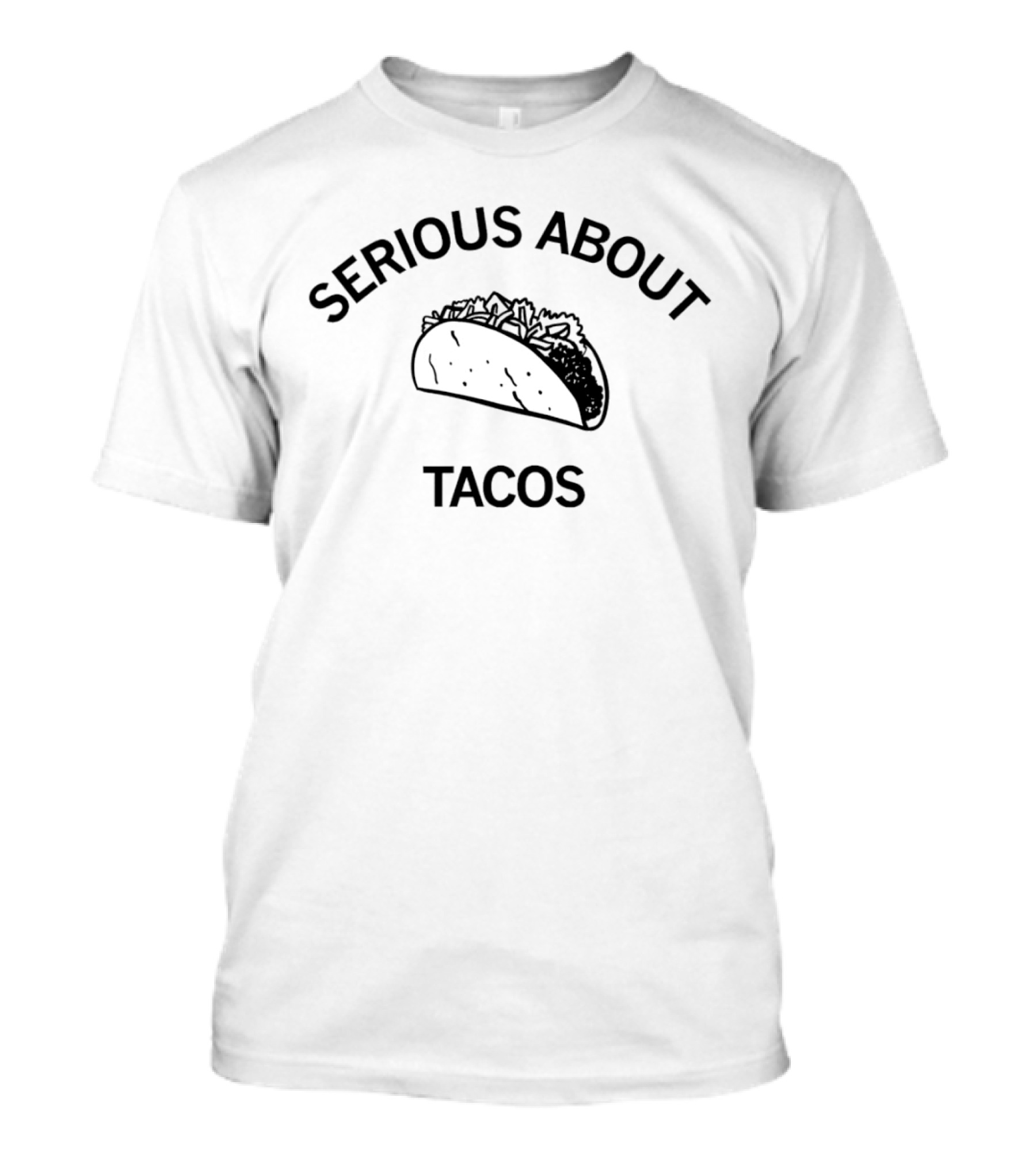 The Serious About Tacos Descriptive Taco T-shirt is designed for everyday wear and a consistent fit. Fabric is pre-shrunk ring-spun cotton with durable stitching. See the size chart below for exact measurements.