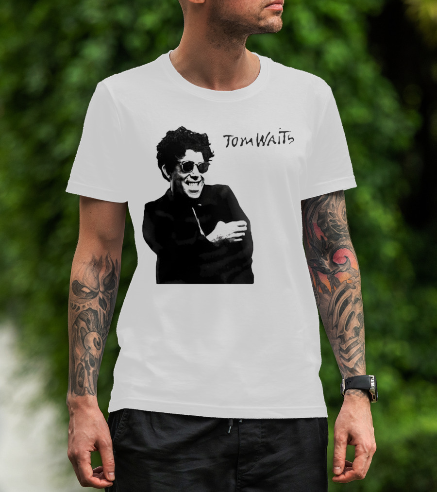 The Tom Waits Black and White Sunglasses T-shirt is designed for everyday wear and a consistent fit. Fabric is pre-shrunk ring-spun cotton with durable stitching. See the size chart below for exact measurements.