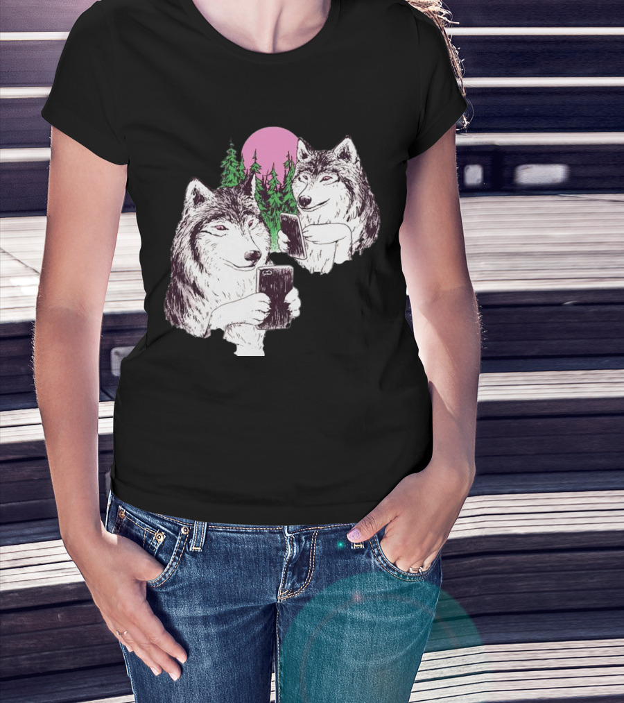 How much will this There Are Two Wolves Inside You Both on Smartphones Against a Pink Moon and Pine Trees shirt shrink?