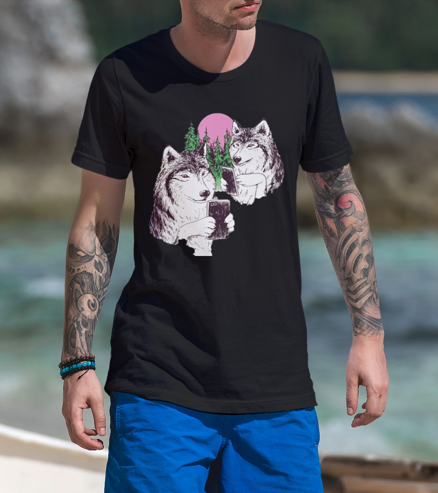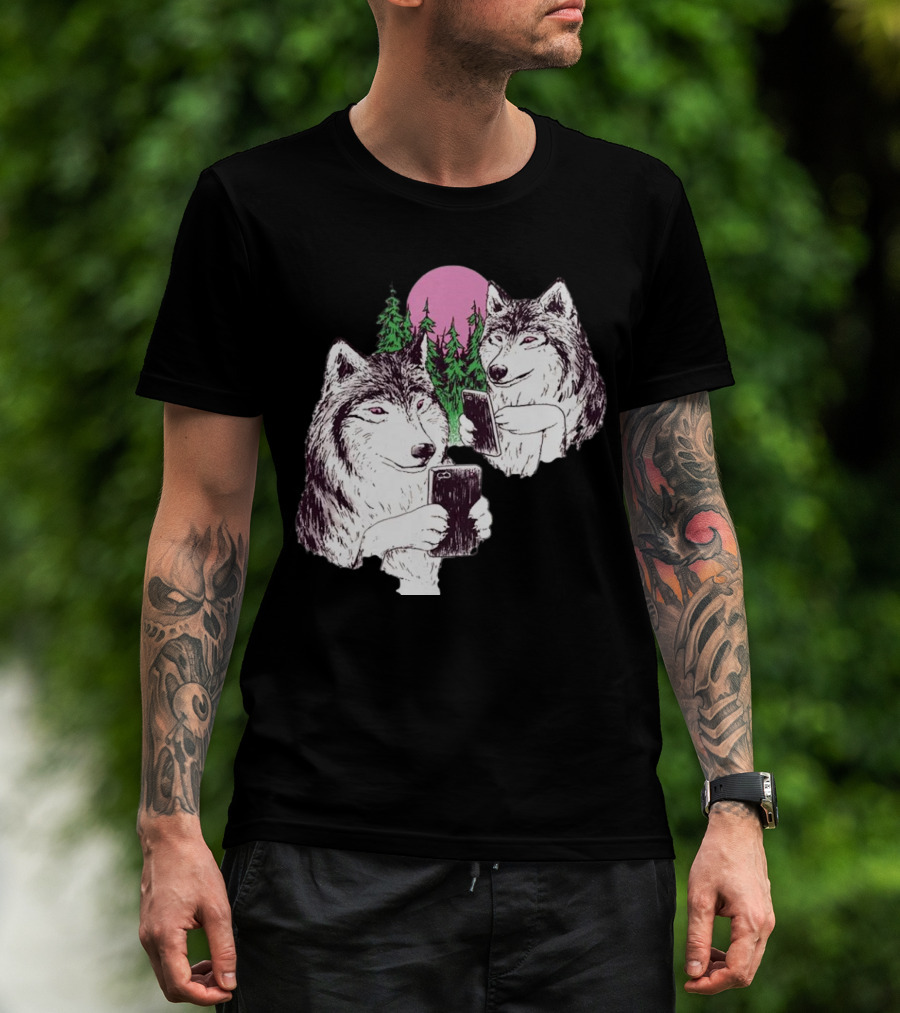 The There Are Two Wolves Inside You Both on Smartphones Against a Pink Moon and Pine Trees T-shirt is designed for everyday wear and a consistent fit. Fabric is pre-shrunk ring-spun cotton with durable stitching. See the size chart below for exact measurements.