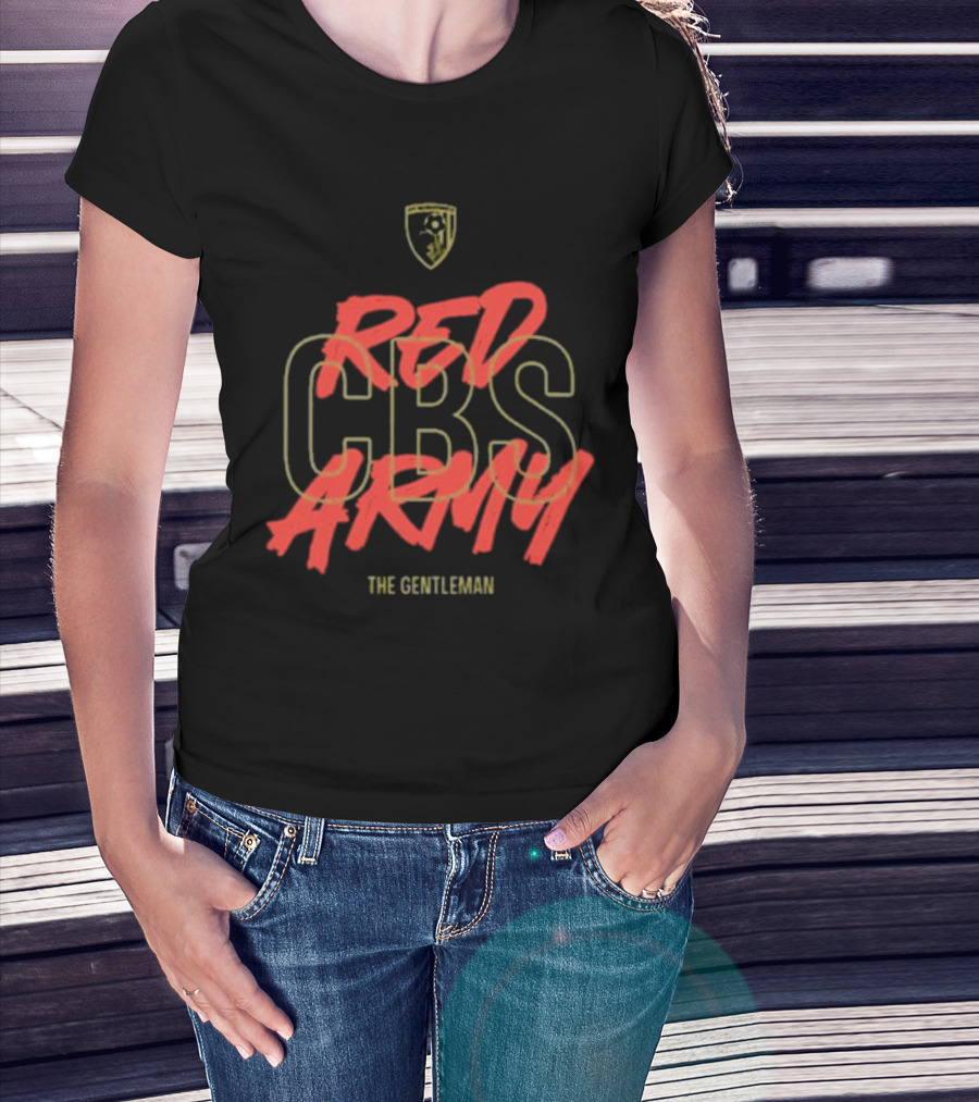 The Red CBS Army The Gentleman T-shirt is designed for everyday wear and a consistent fit. Fabric is pre-shrunk ring-spun cotton with durable stitching. See the size chart below for exact measurements.