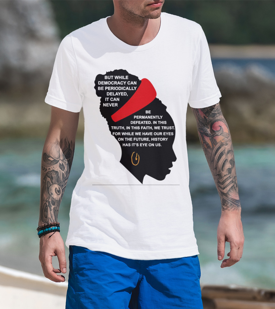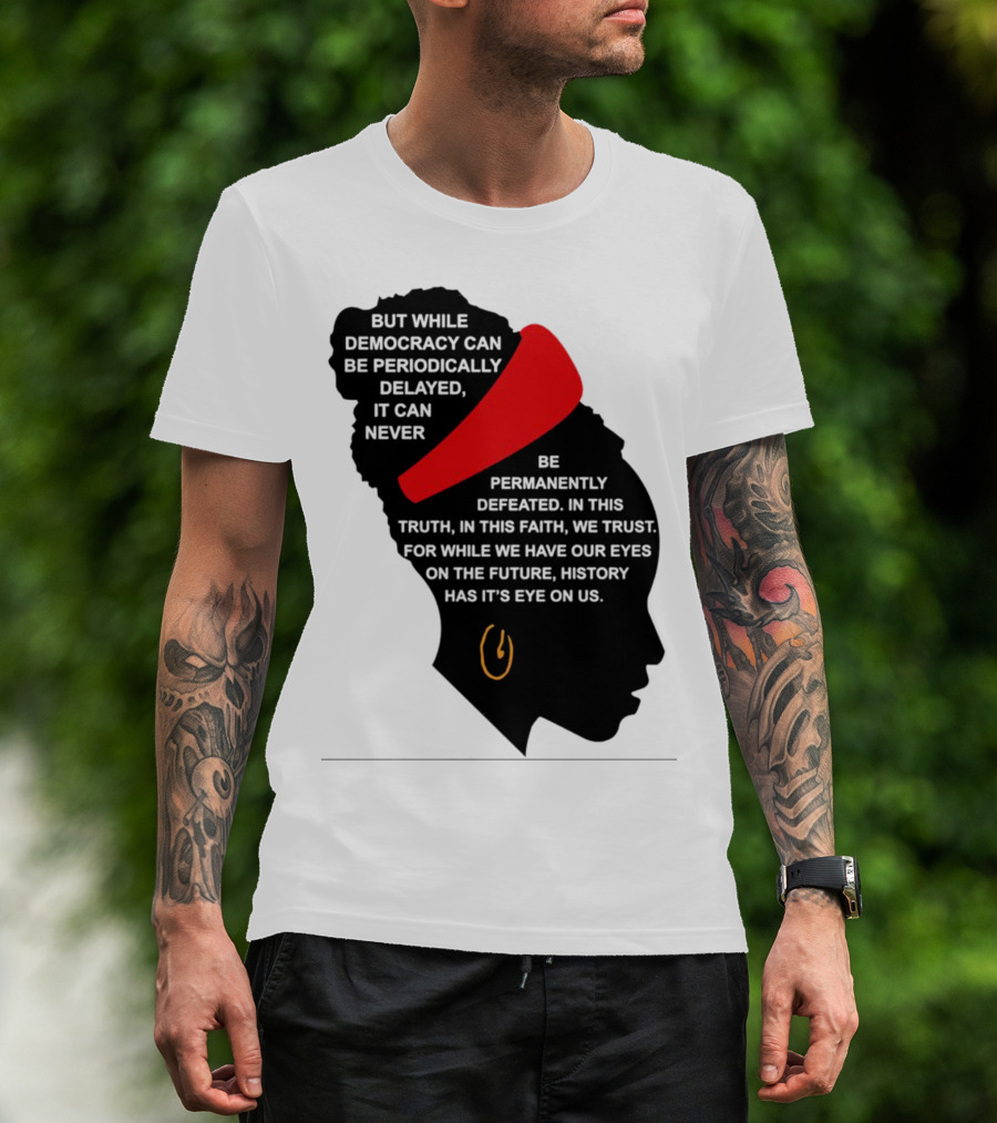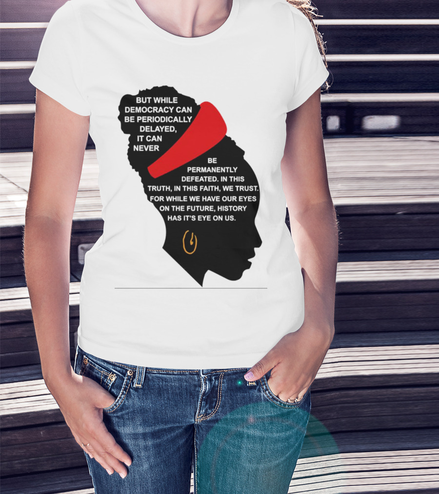 Amanda Gorman Democracy Periodically Delayed Never Permanently Defeated Silhouette With Red Headband T-Shirt