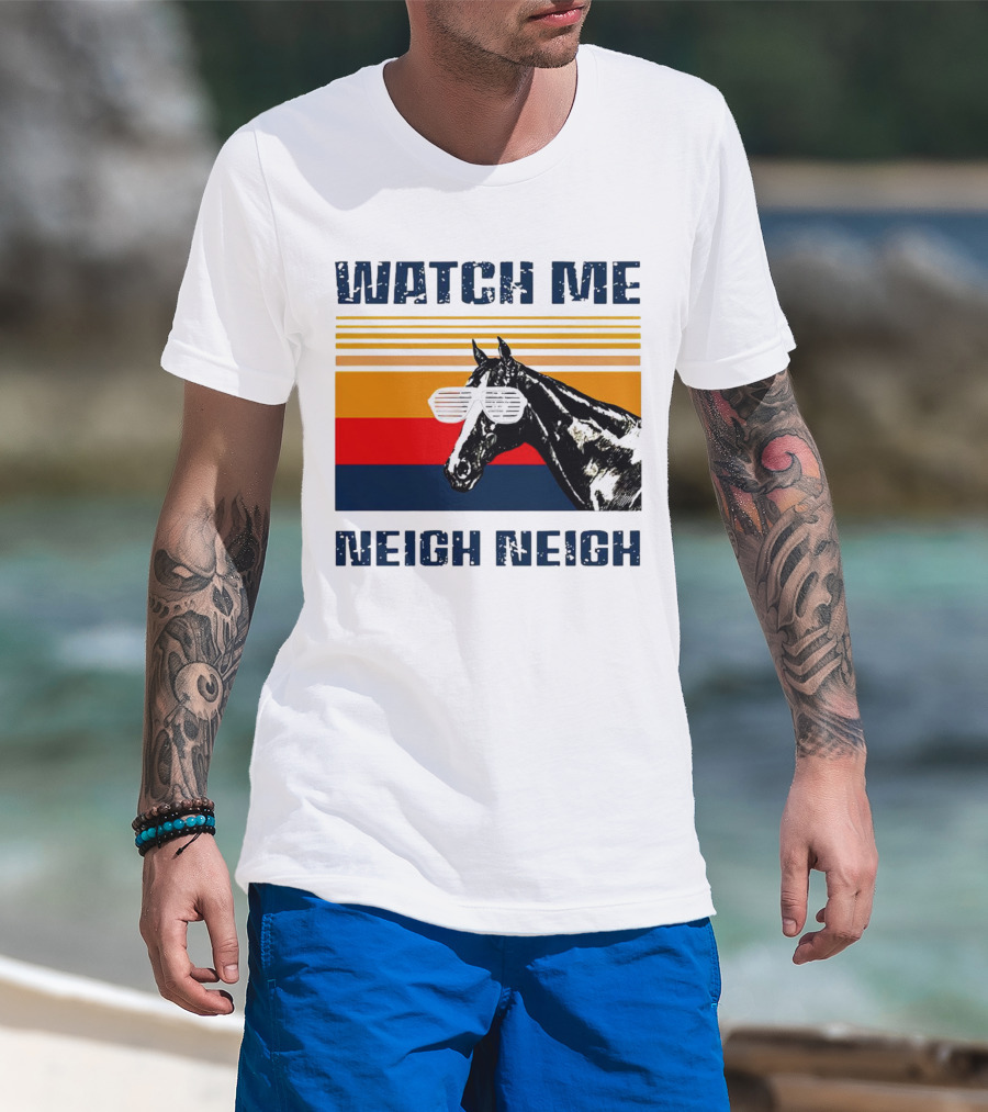 Watch Me Neigh Neigh Vintage Retro Horse Sunglasses T-Shirt