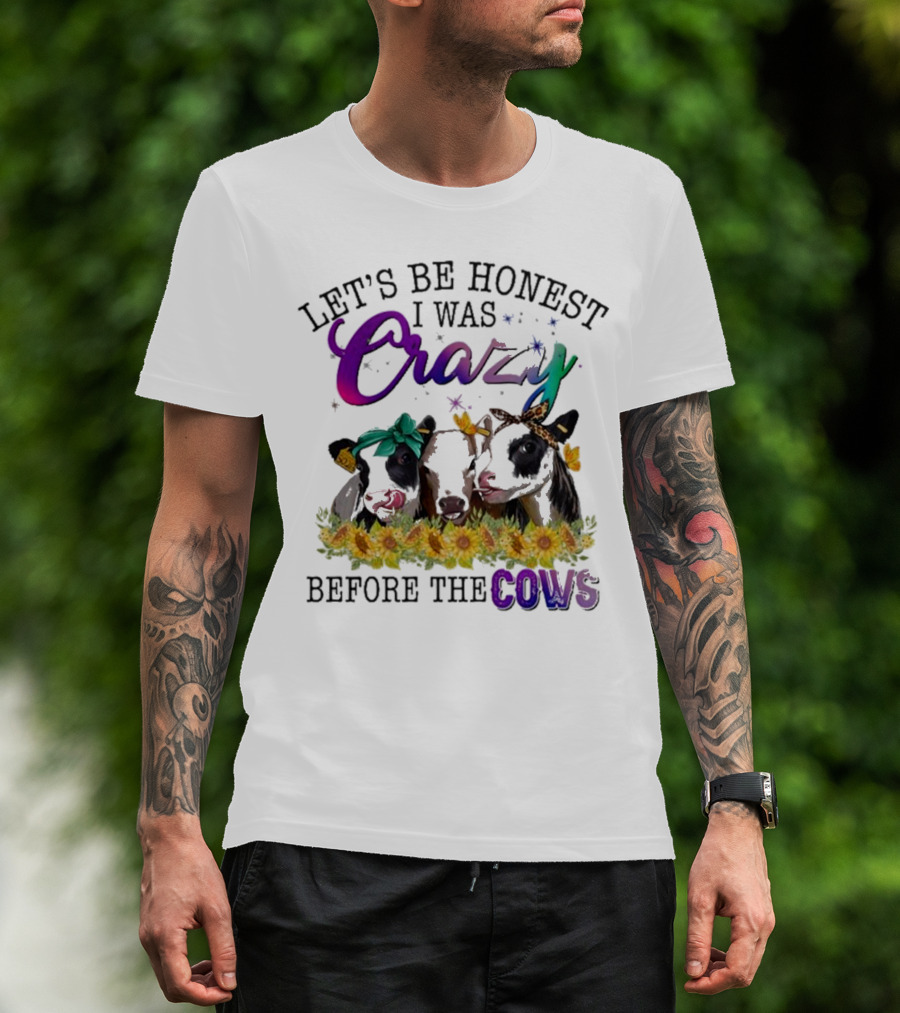 Let’s Be Honest I Was Crazy Before The Cows Sunflowers Bandanas Flowers T-Shirt