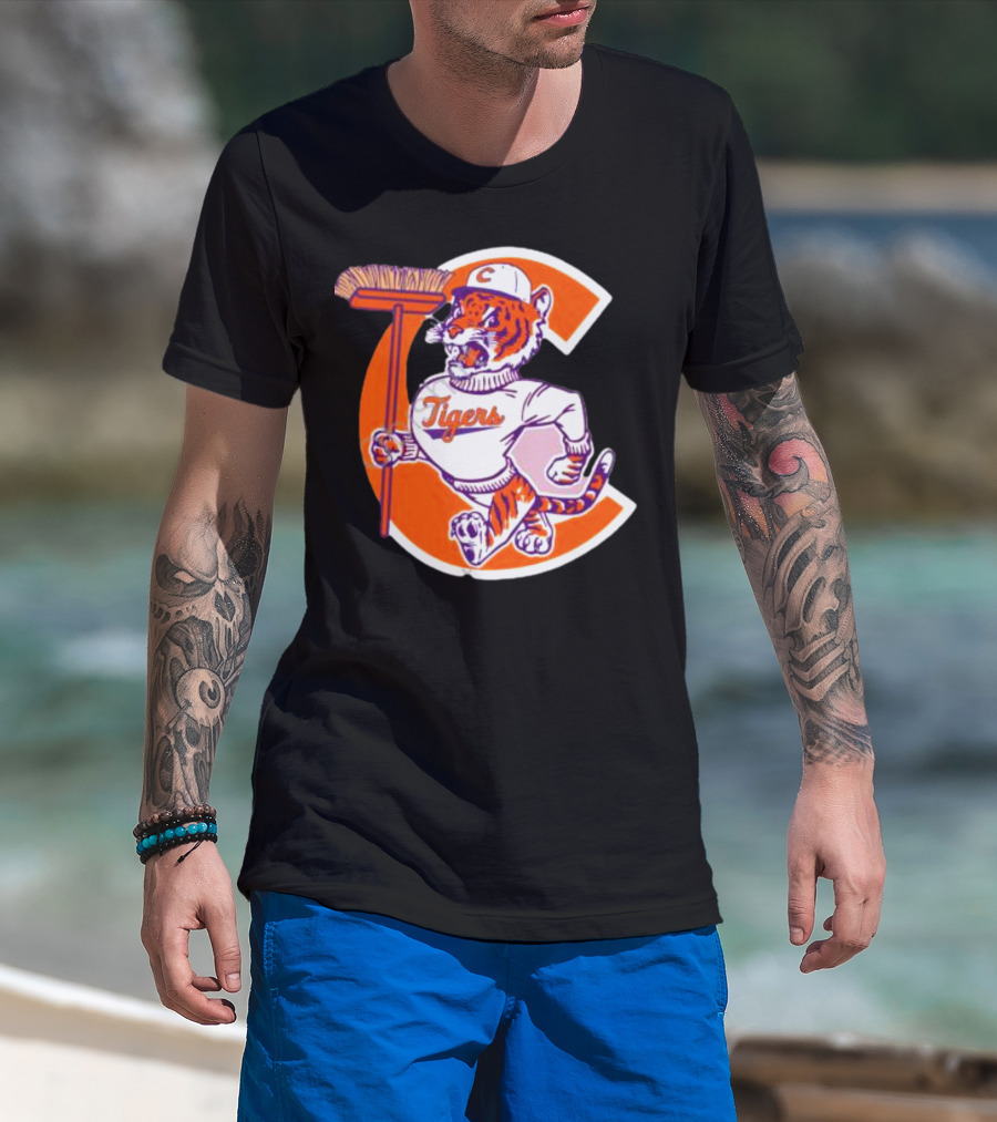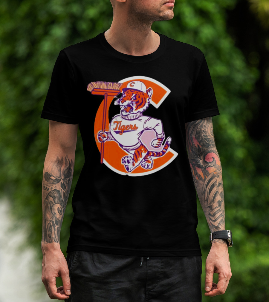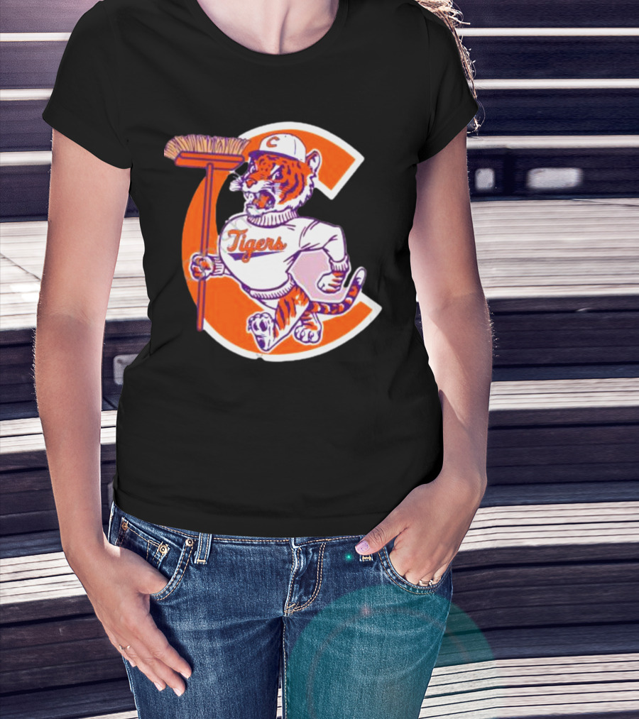 Clemson Tigers Vintage Logo With Broom And Letter C T-Shirt