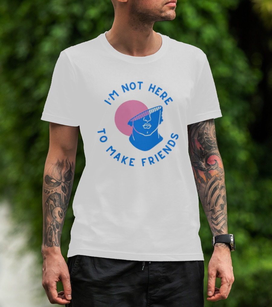 The I’m Not Here To Make Friends Sam Smith Blue Pink Bust Sunglasses T-shirt is designed for everyday wear and a consistent fit. Fabric is pre-shrunk ring-spun cotton with durable stitching. See the size chart below for exact measurements.