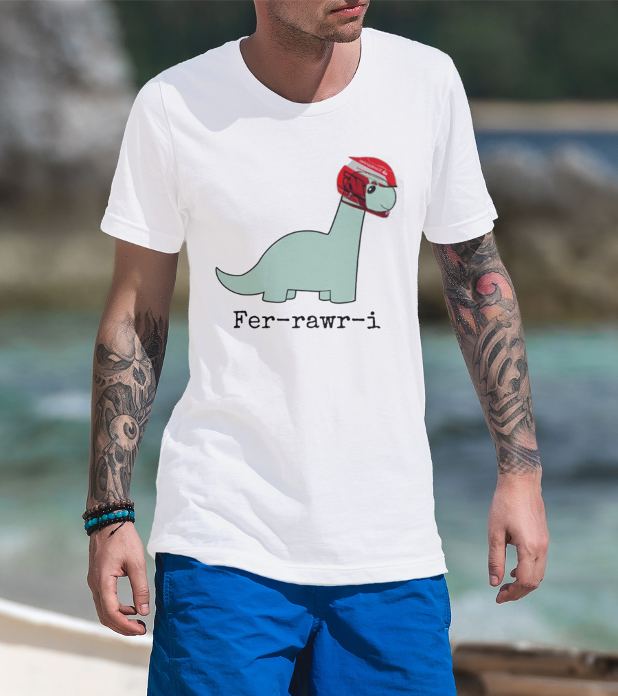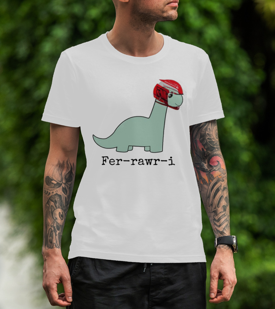 Fer-Rawr-I Dinosaur With Red Racing Helmet T-Shirt