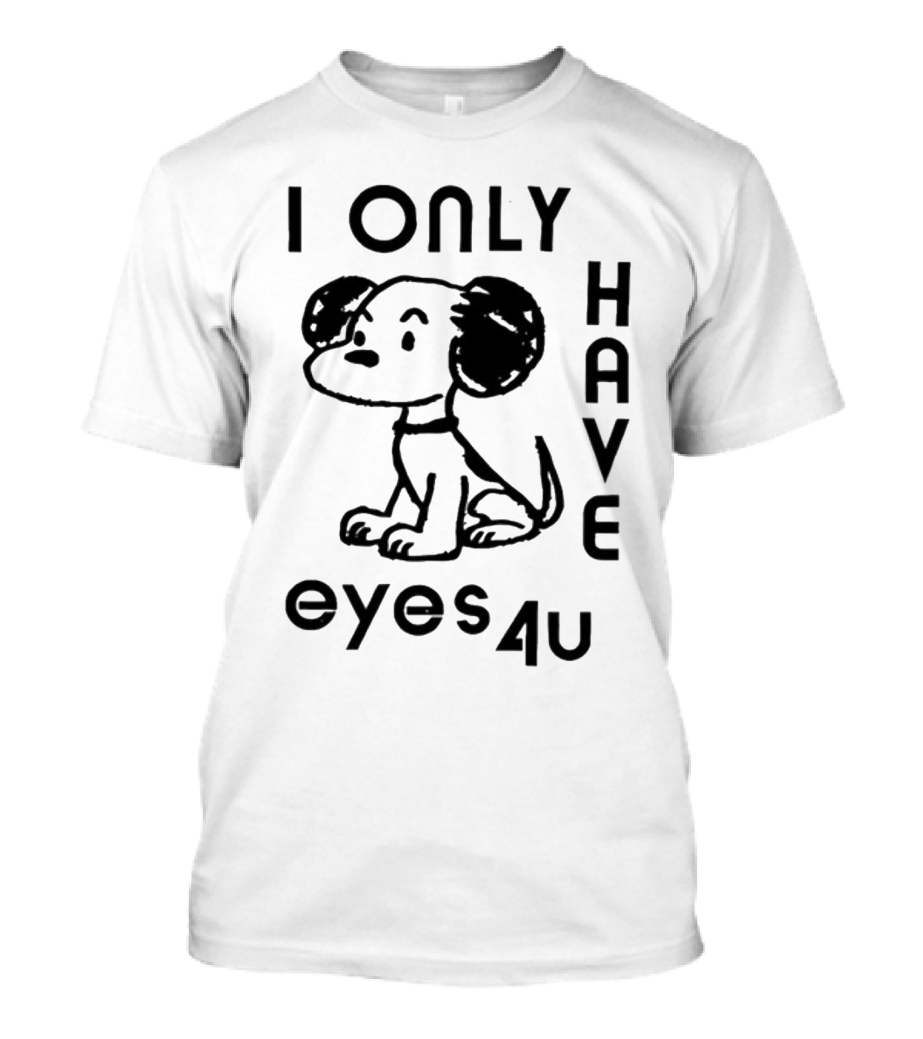 The I Only Have Eyes 4U Cartoon Dog T-shirt is designed for everyday wear and a consistent fit. Fabric is pre-shrunk ring-spun cotton with durable stitching. See the size chart below for exact measurements.