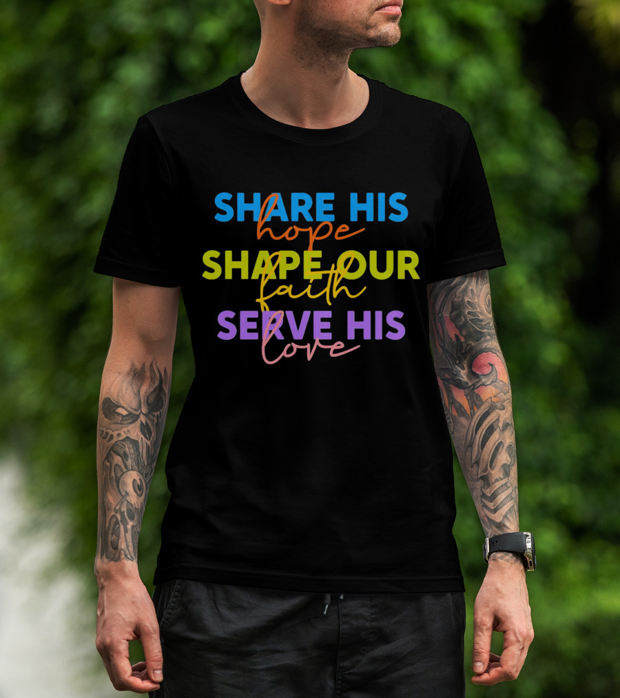 Share His Hope Shape Our Faith Serve His Love Christian Message T-Shirt