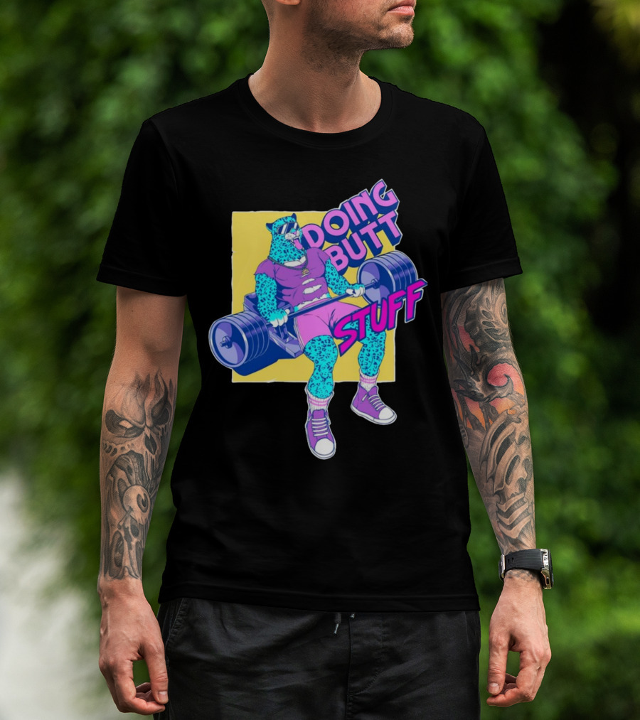 The Doing Butt Stuff Leopard Lifting Weights T-shirt is designed for everyday wear and a consistent fit. Fabric is pre-shrunk ring-spun cotton with durable stitching. See the size chart below for exact measurements.