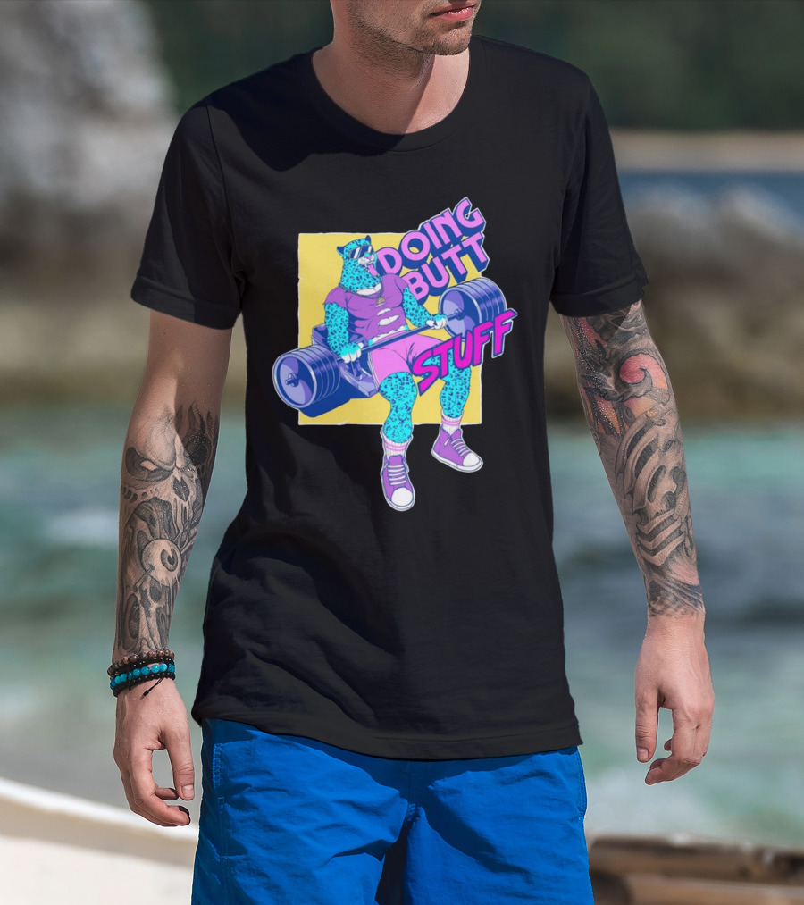 Doing Butt Stuff Leopard Lifting Weights T-Shirt