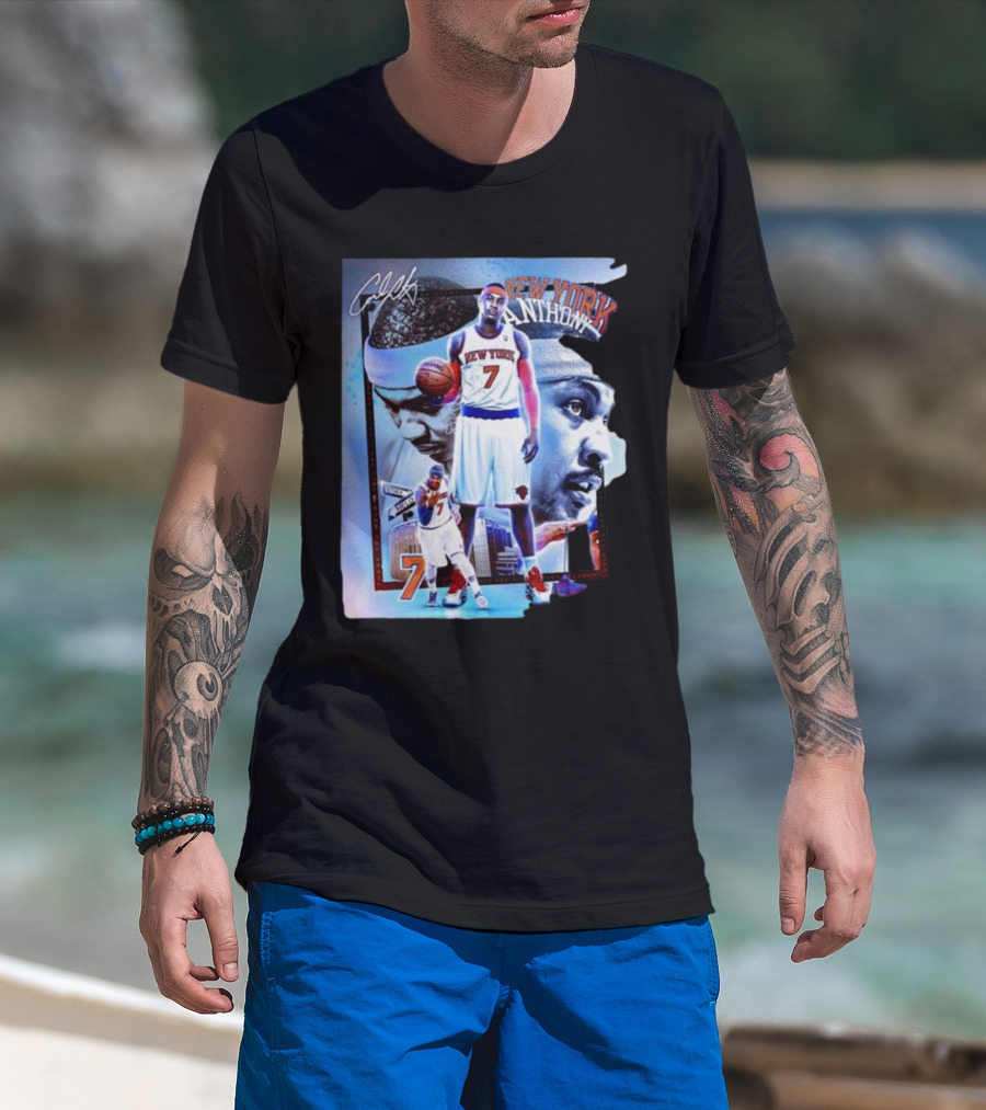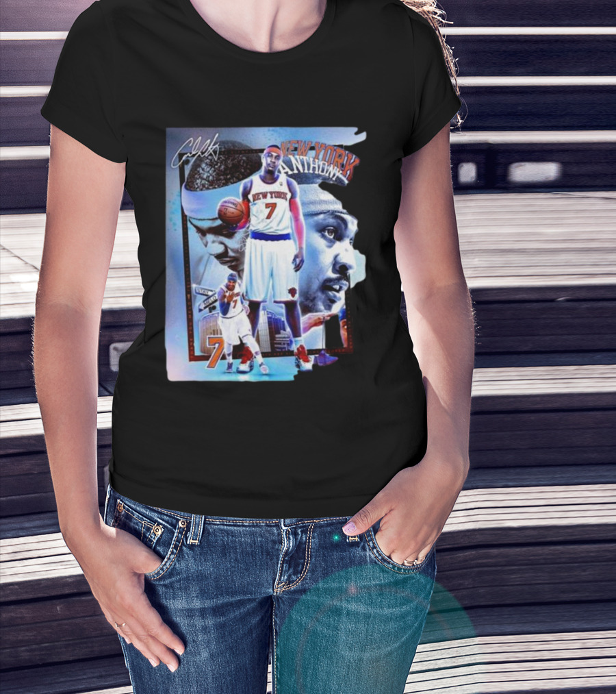 The New York Anthow 7 Basketball Legend Collage T-shirt is designed for everyday wear and a consistent fit. Fabric is pre-shrunk ring-spun cotton with durable stitching. See the size chart below for exact measurements.