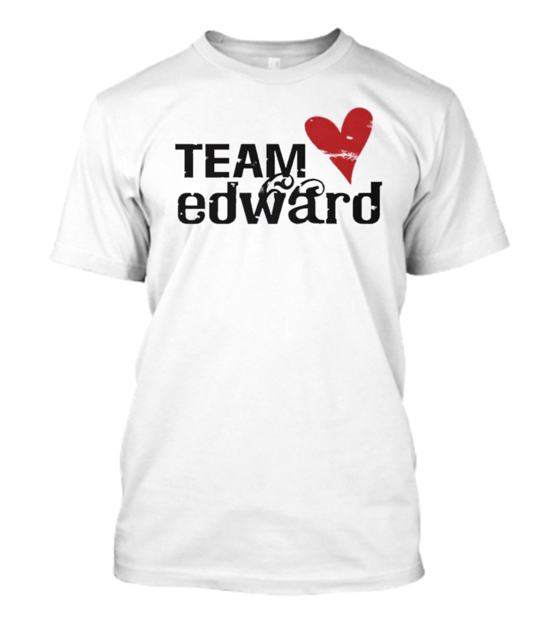 The Team Edward Twilight Red Heart Fan T-shirt is designed for everyday wear and a consistent fit. Fabric is pre-shrunk ring-spun cotton with durable stitching. See the size chart below for exact measurements.