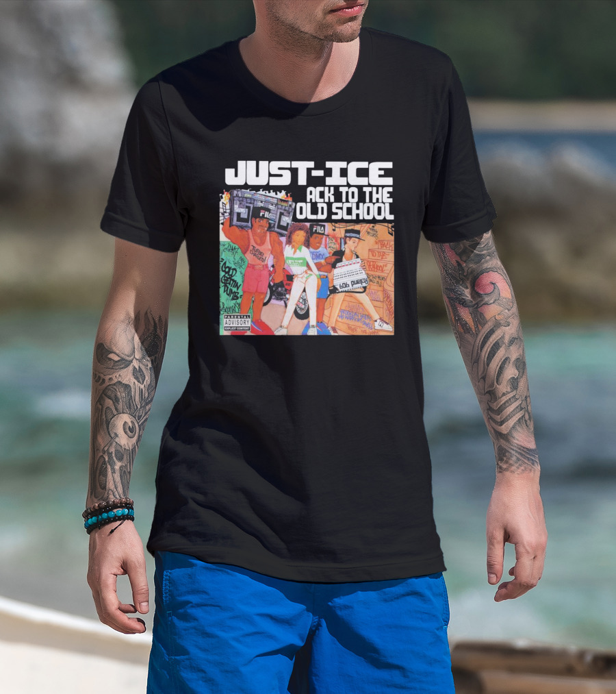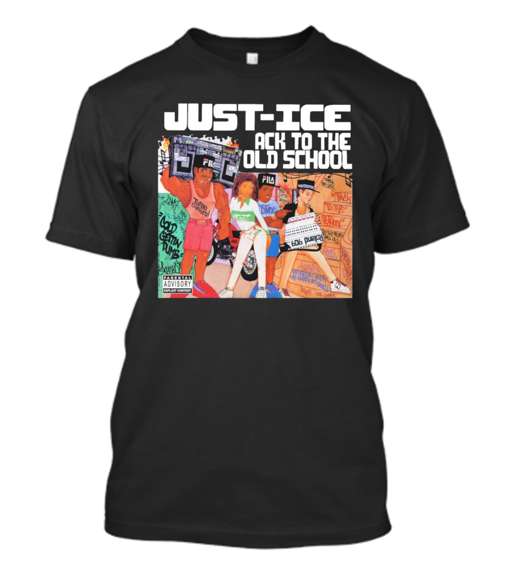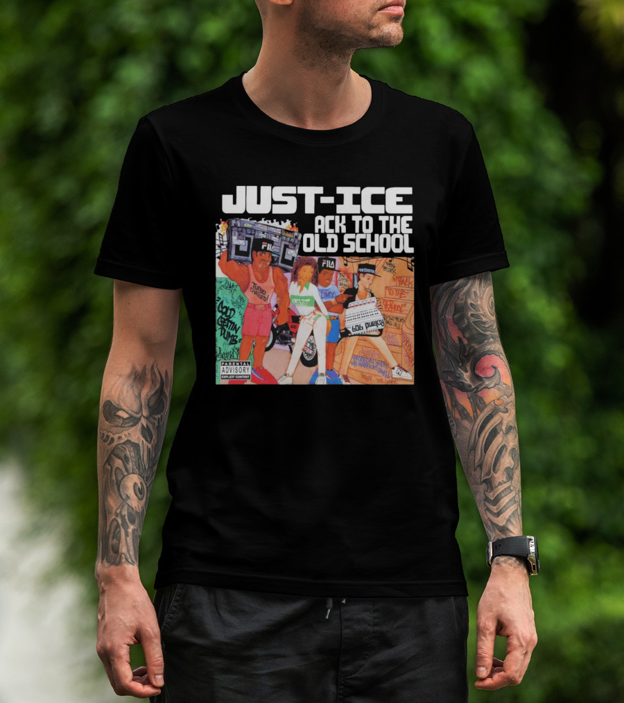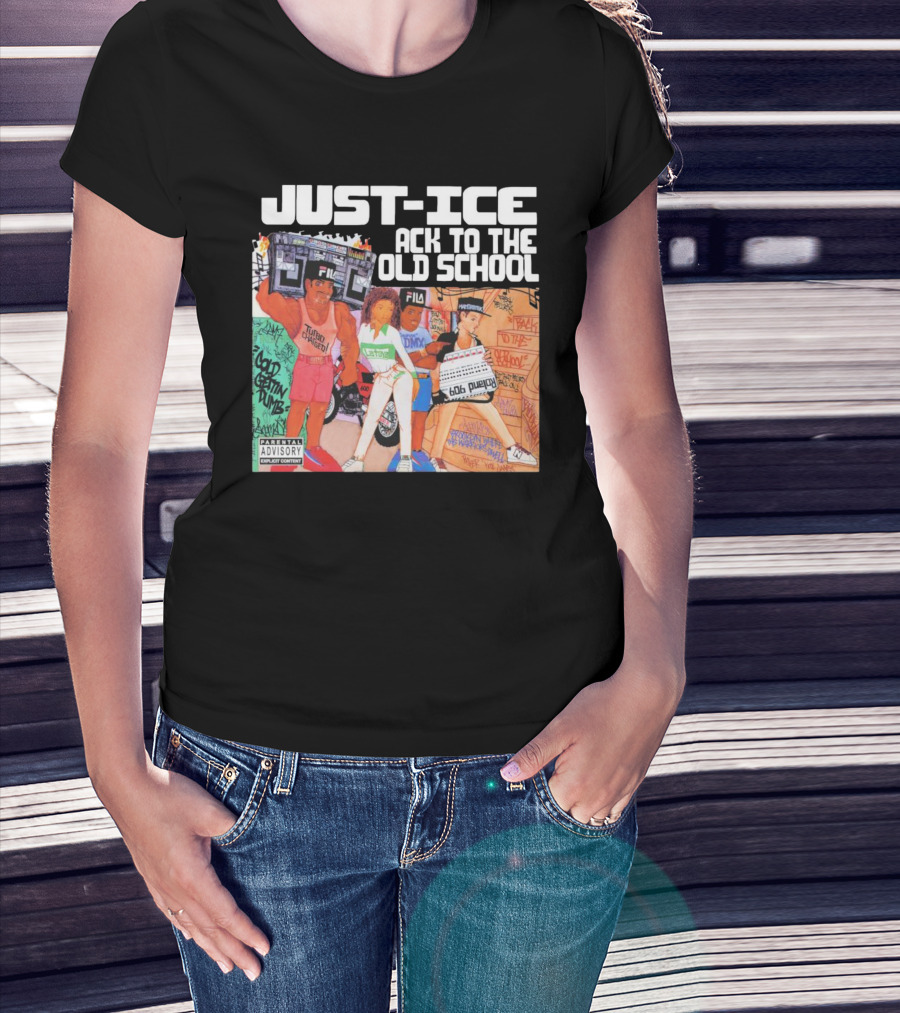 Just-Ice Back To The Old School CD Parental Advisory Explicit Content Fila Graffiti Boom Box T-Shirt