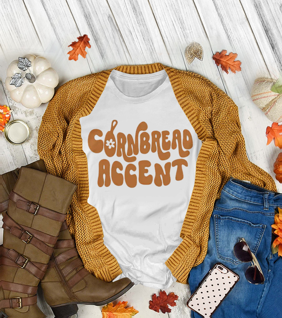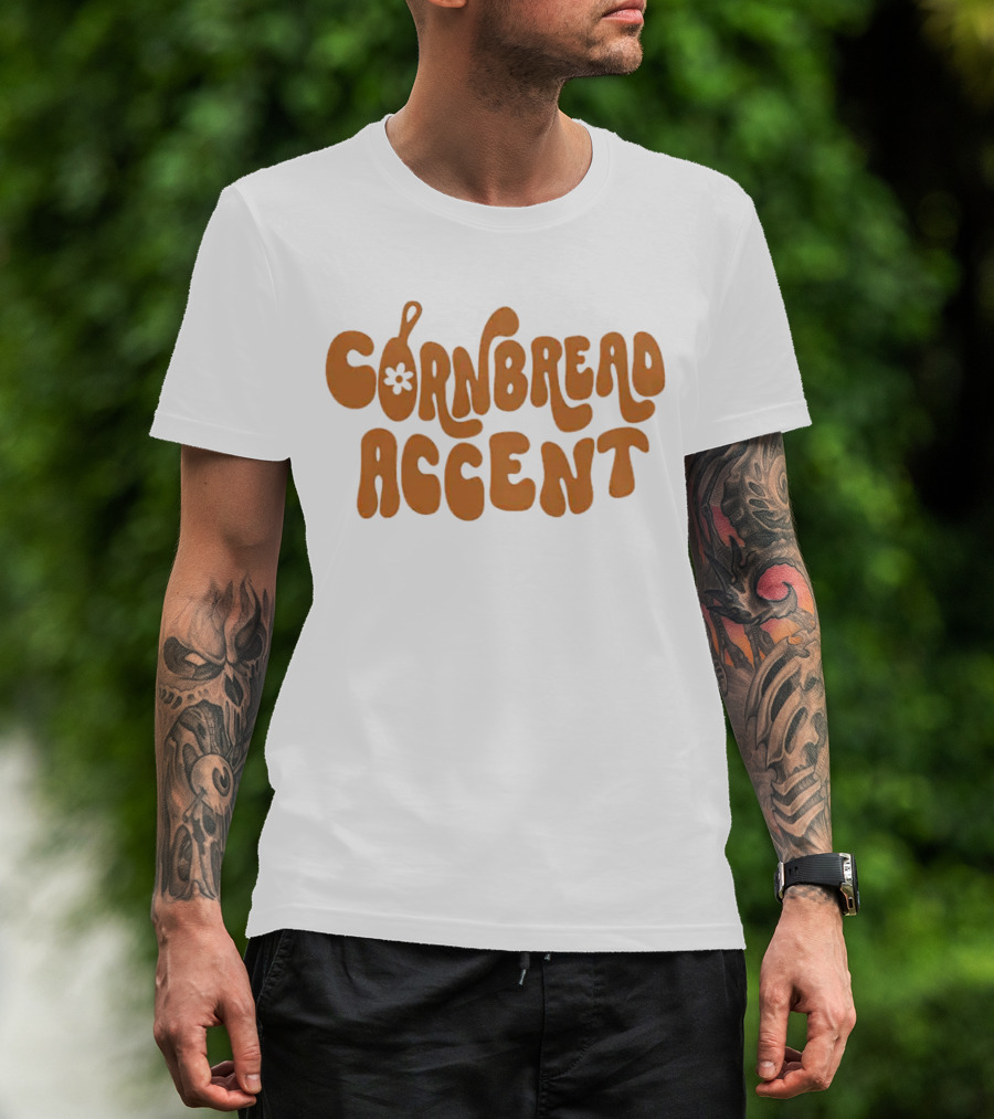 CORNBREAD ACCENT Retro Psychedelic Flower Power Text T-Shirt