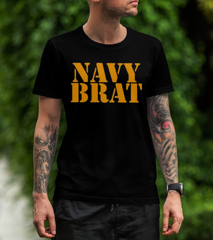 Navy Brat Vintage Military Style Text Bold Yellow Font T-Shirt
