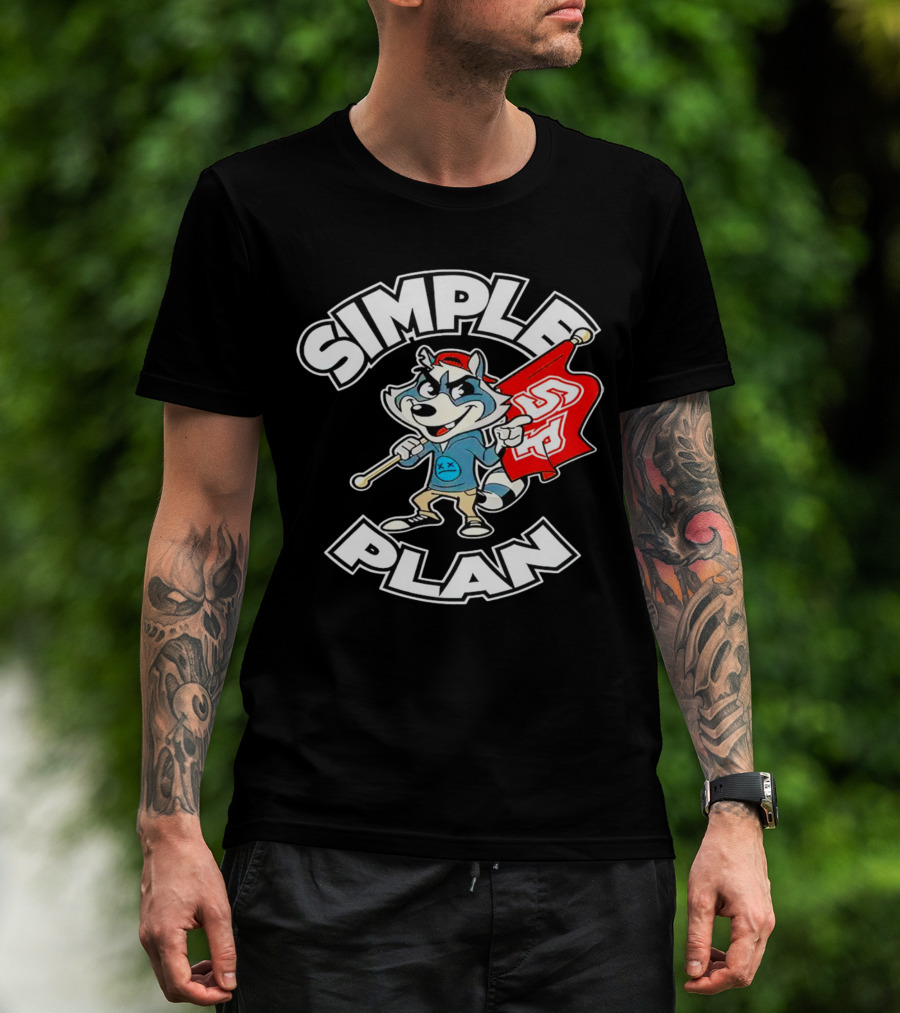 Simple Plan Raccoon Mascot Holding Red Flag T-Shirt