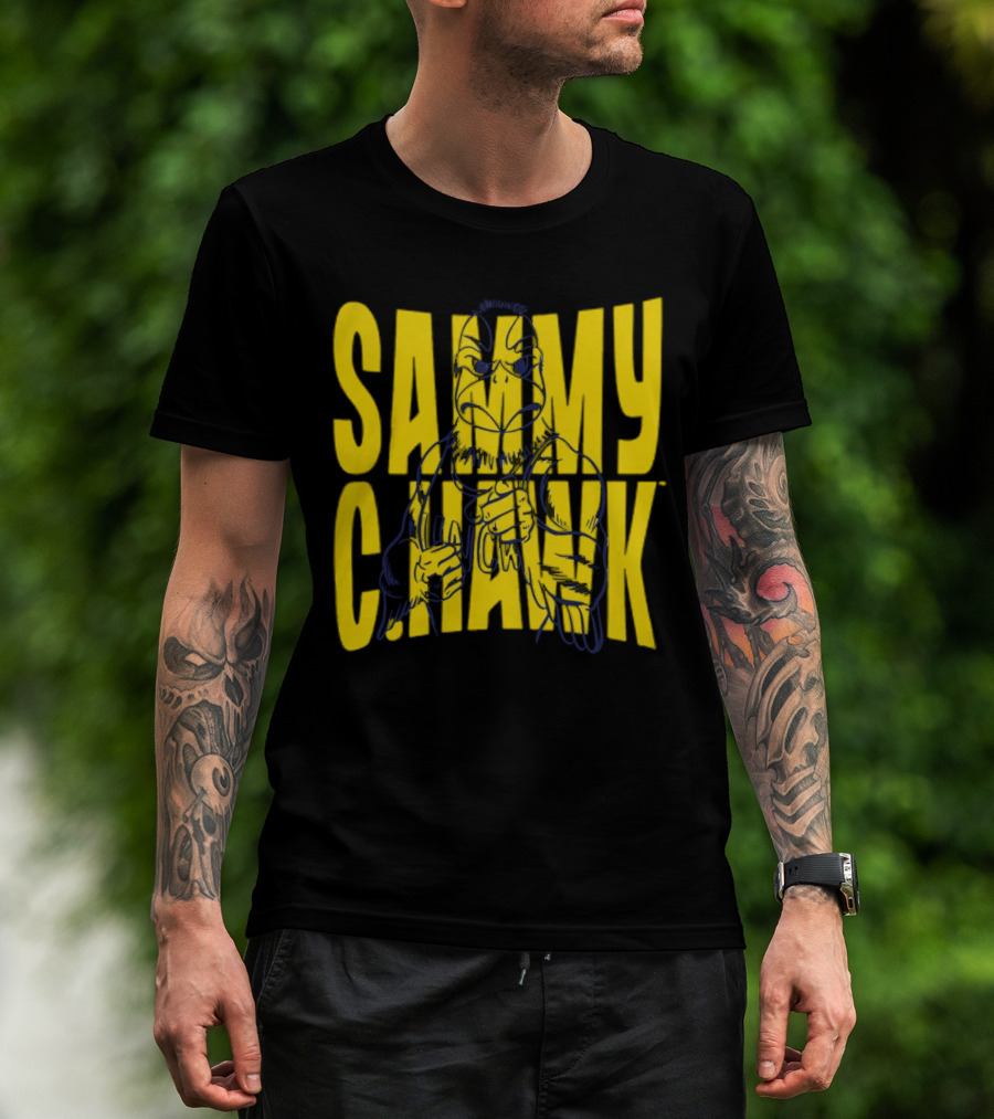 UNC Wilmington Seahawks Sammy C. Hawk Bold Yellow Text With Mascot Outline T-Shirt