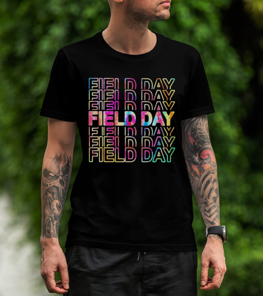 The Field Day Colorful Tie Dye Text T-shirt is designed for everyday wear and a consistent fit. Fabric is pre-shrunk ring-spun cotton with durable stitching. See the size chart below for exact measurements.