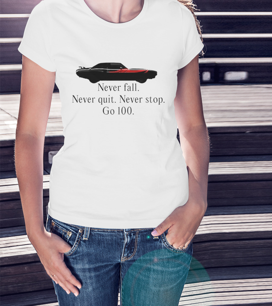 Never Fall Never Quit Never Stop Go 100 Red Classic Car T-Shirt