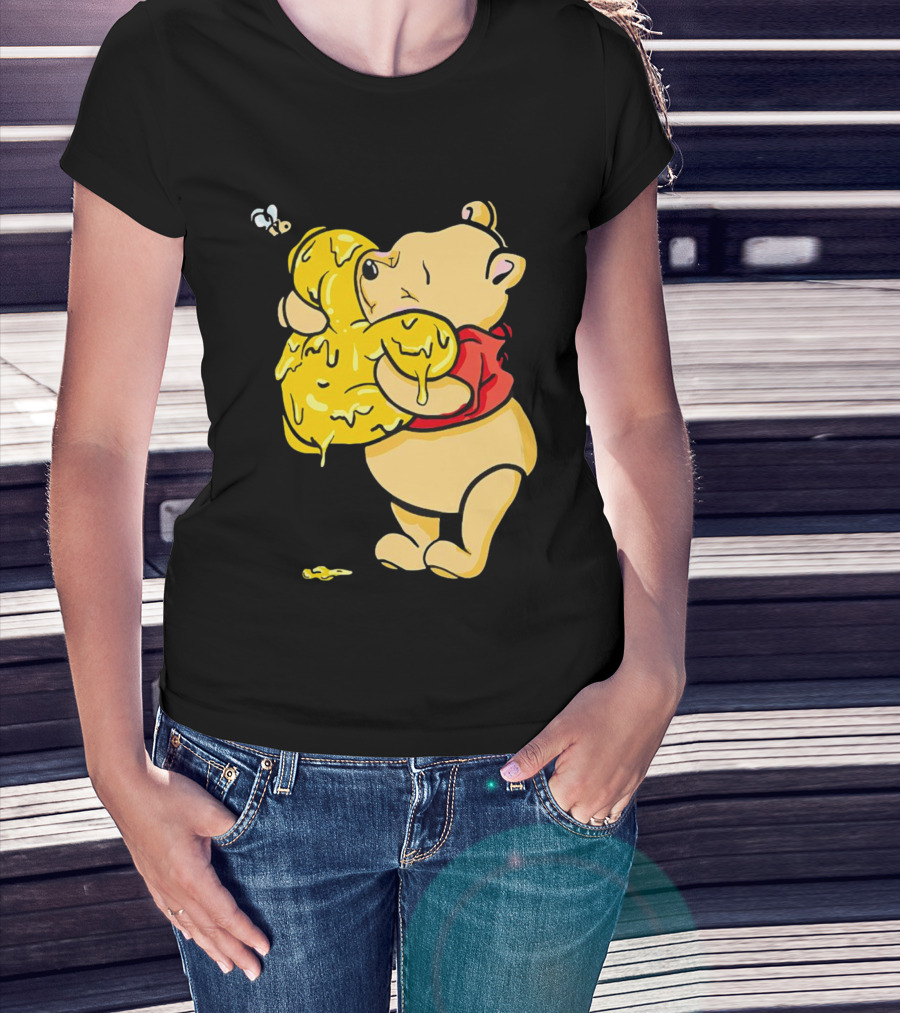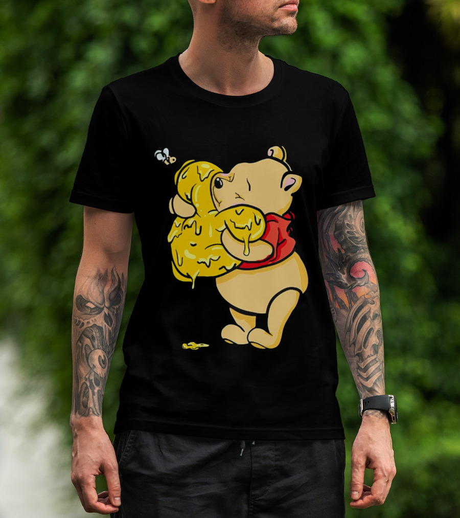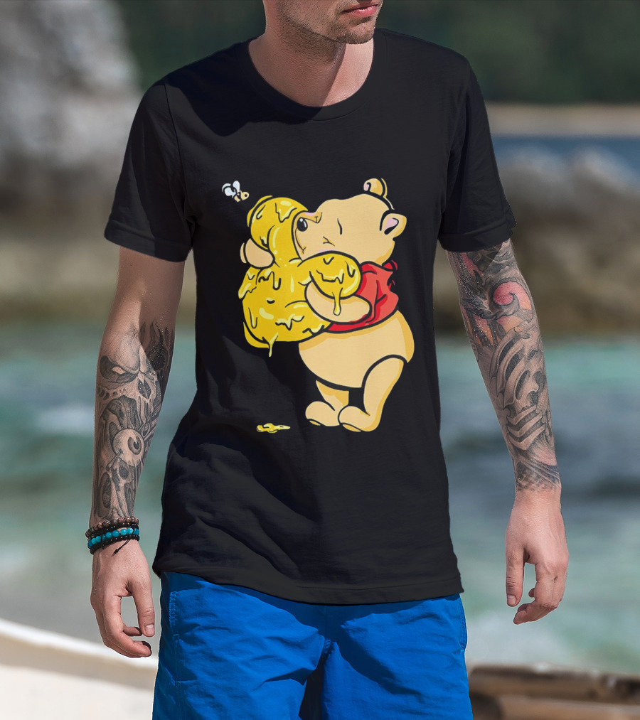 Pooh Bear Hugging Hunny Pot With Bee T-Shirt