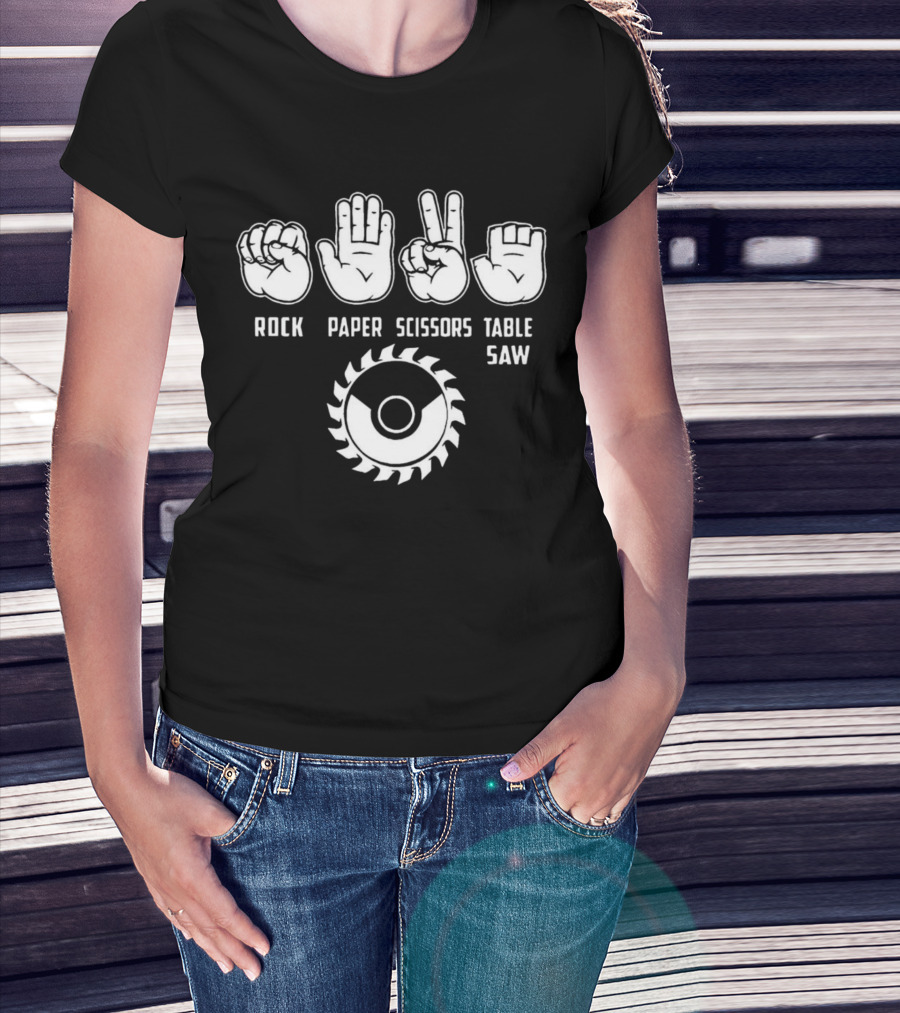 Rock Paper Scissors Table Saw Hand Gesture With Circular Blade T-Shirt