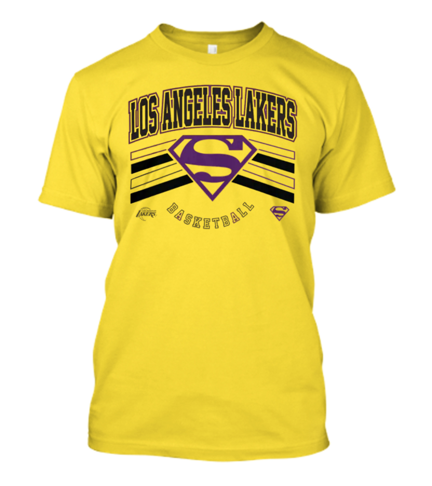 The Los Angeles Lakers Superman Logo Purple Basketball T-shirt is designed for everyday wear and a consistent fit. Fabric is pre-shrunk ring-spun cotton with durable stitching. See the size chart below for exact measurements.