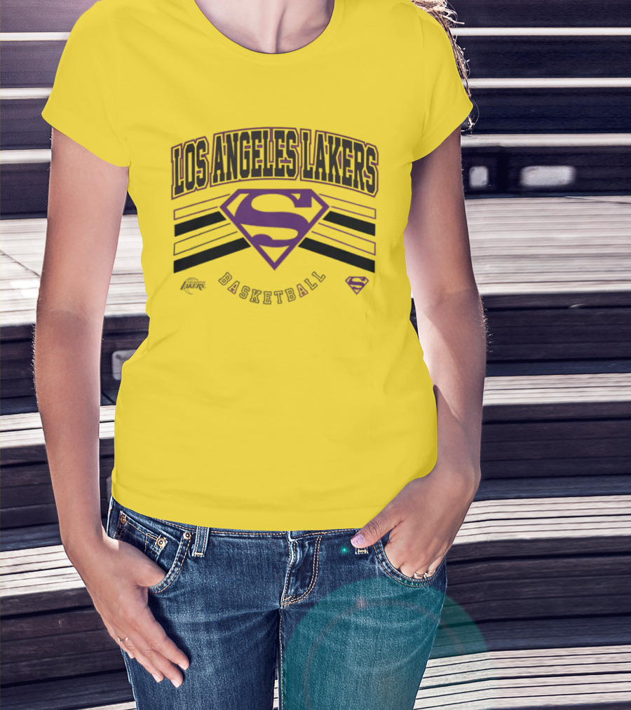 Los Angeles Lakers Superman Logo Purple Basketball T-Shirt