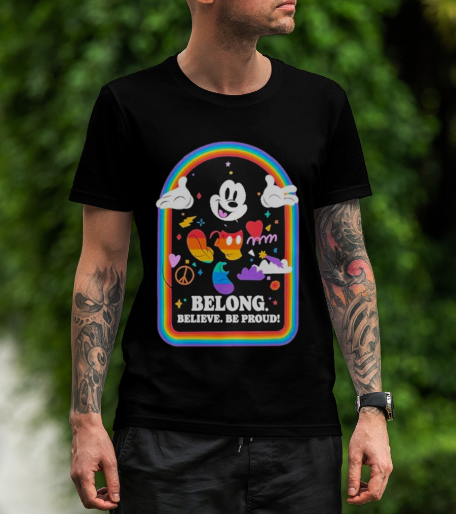 Mickey Mouse Rainbow Belong Believe Be Proud T-Shirt