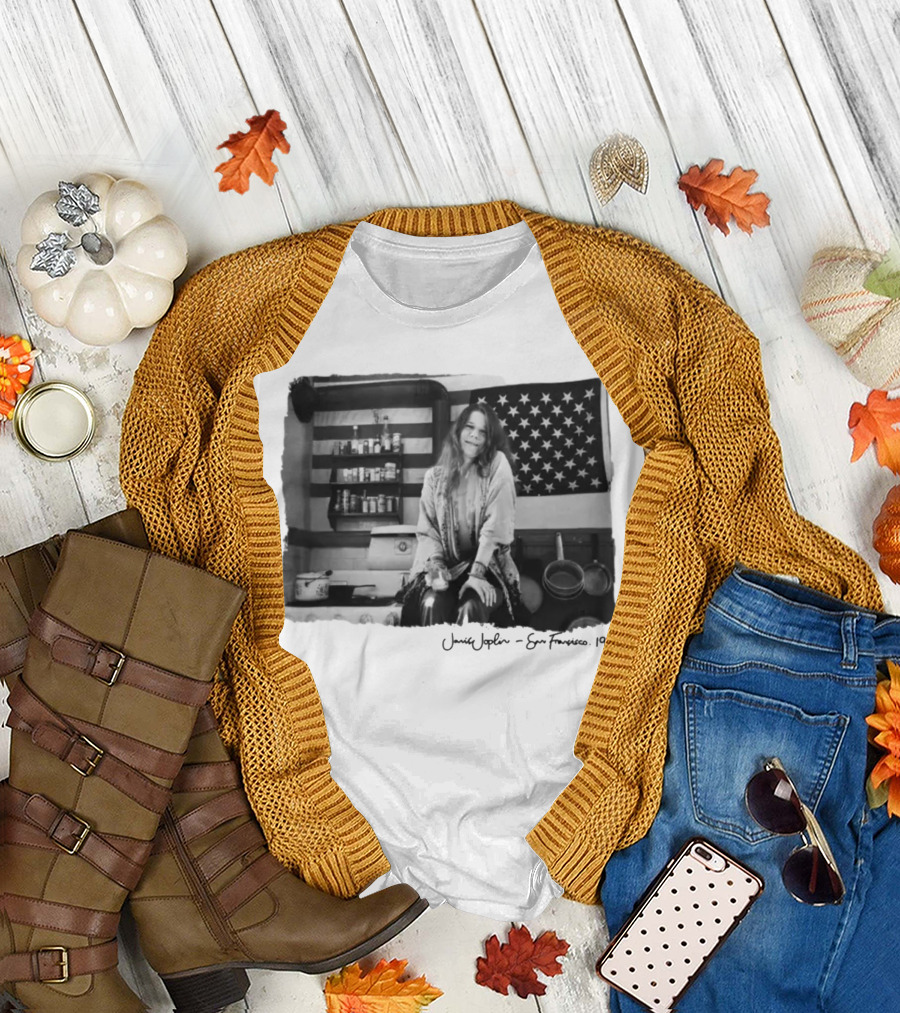Janis Joplin San Francisco 1969 Kitchen Scene With American Flag T-Shirt