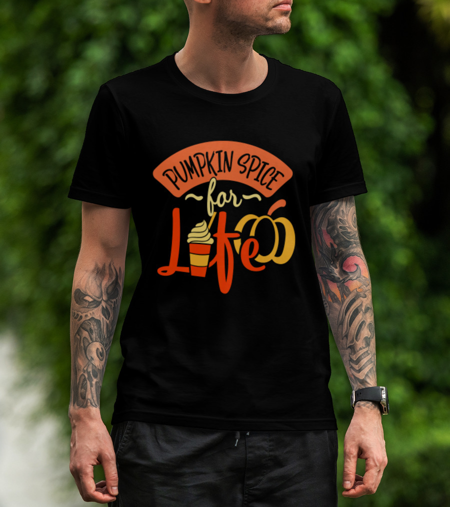 The Pumpkin Spice for Life Thanksgiving Pumpkin Cup T-shirt is designed for everyday wear and a consistent fit. Fabric is pre-shrunk ring-spun cotton with durable stitching. See the size chart below for exact measurements.