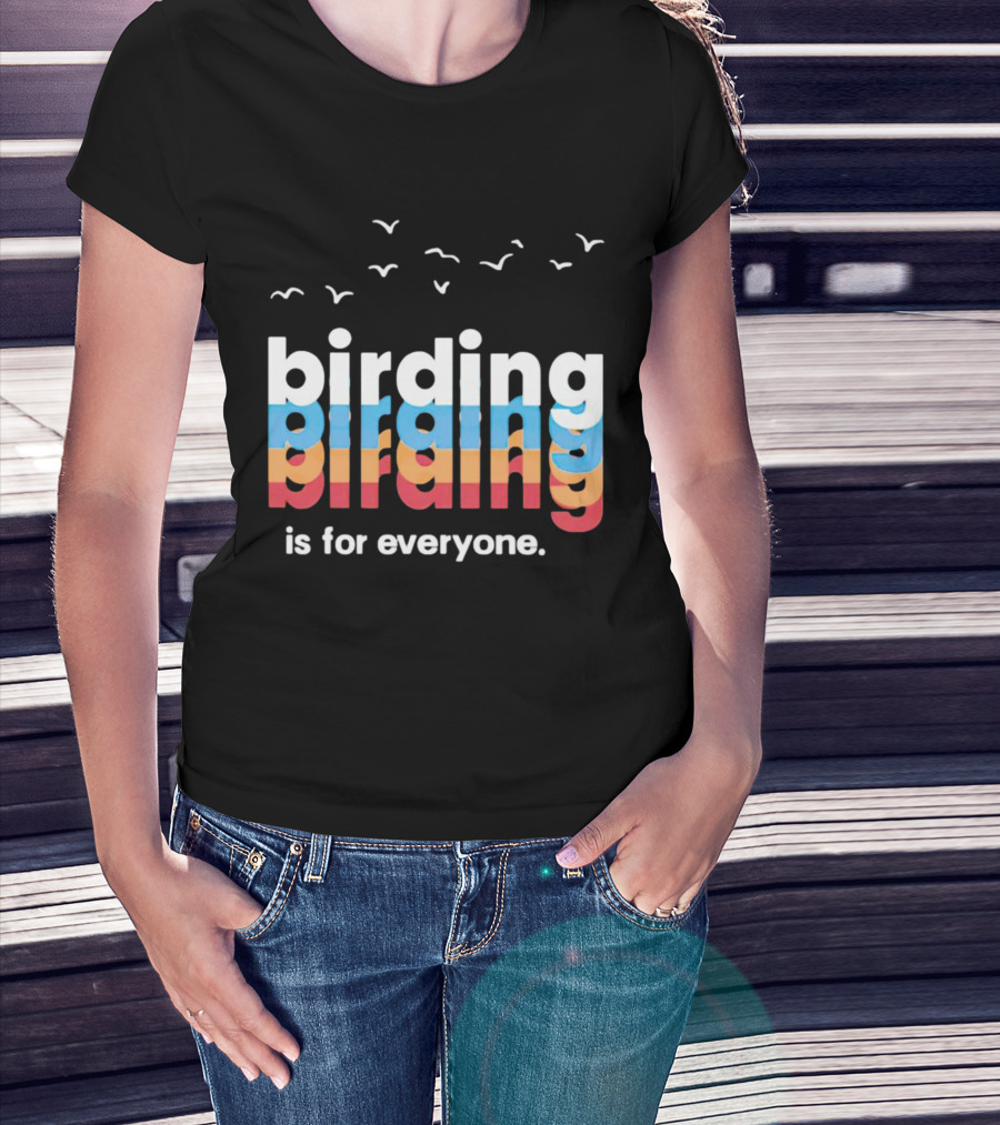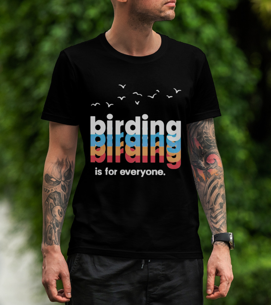 Birding Is For Everyone Vintage Style With Birds Flying Above T-Shirt