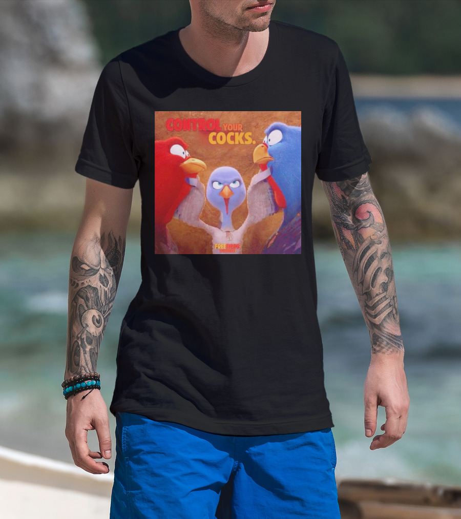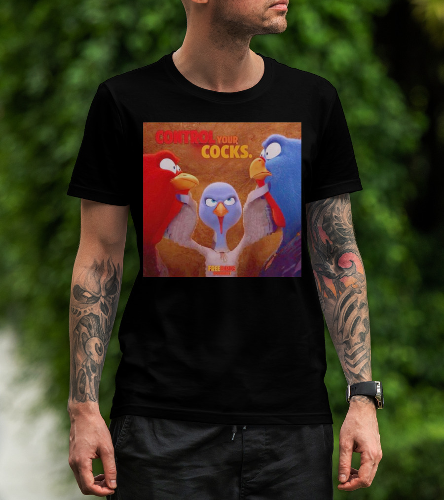 The Control Your Cocks Free Birds November T-shirt is designed for everyday wear and a consistent fit. Fabric is pre-shrunk ring-spun cotton with durable stitching. See the size chart below for exact measurements.